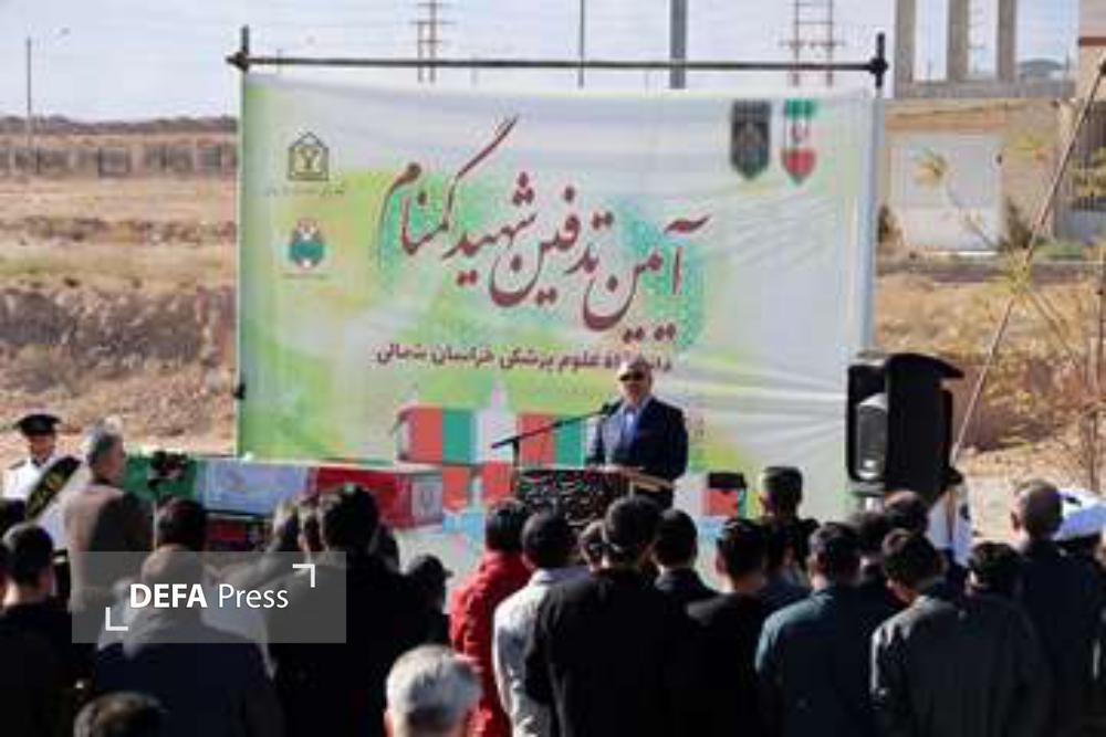 پیکر مطهر یکی از شهدای گمنام بعد از تشییع باشکوه روز گذشته در استان در پردیس دانشگاه علوم پزشکی خراسان شمالی خاکسپاری شد.