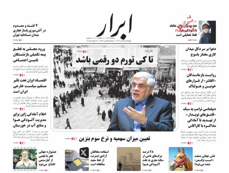 عناوین روزنامههای چهارشنبه پنجم آذر ۱۴۰۴