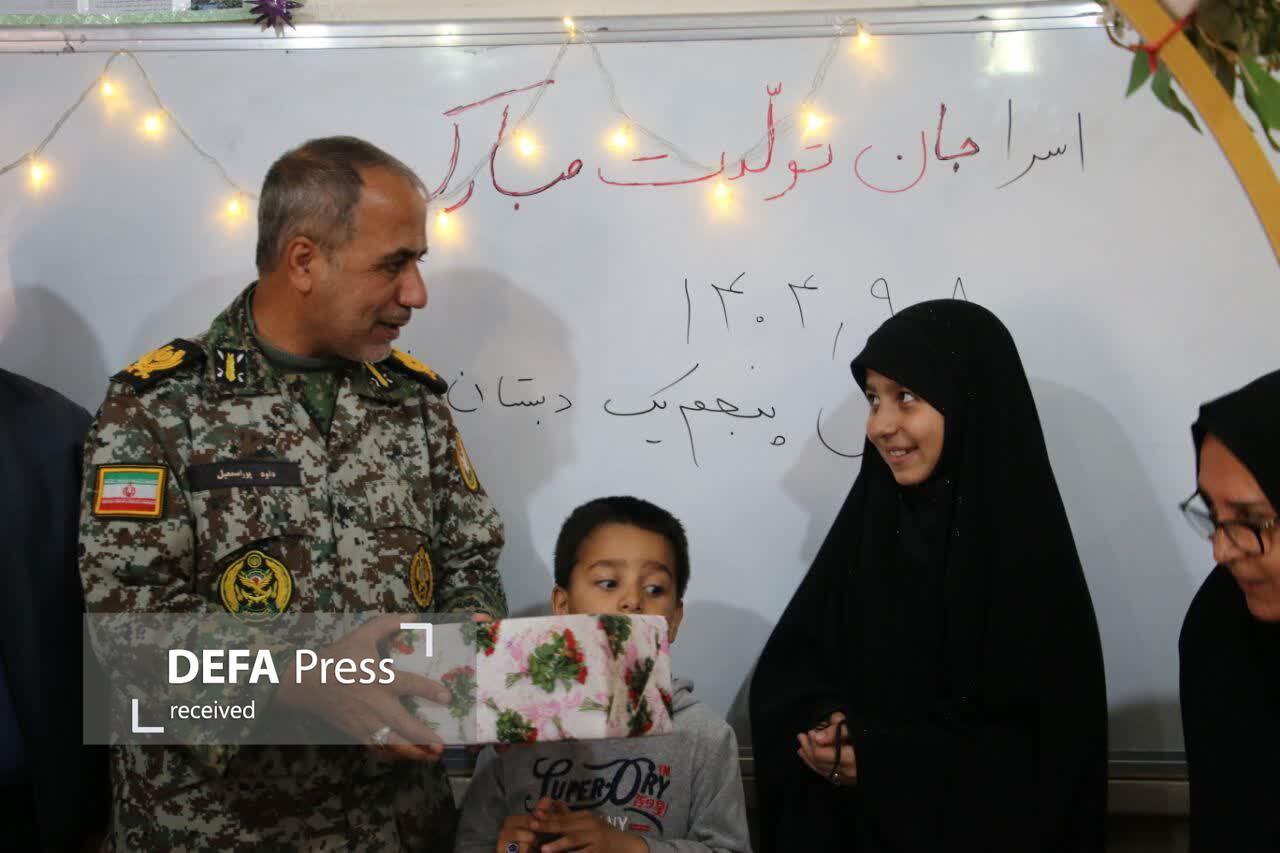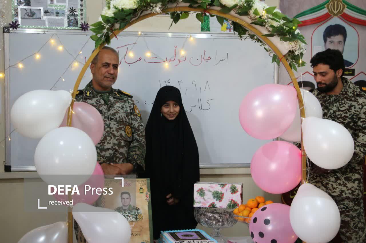 امیرسرتیپ دوم "داود پوراسمعیل" فرمانده گروه پدافندهوایی شهید نیک اندیش تبریز با حضور در مدرسه شهید افتخاری در جشن تولد اسرا فرزند شهید اقتدار پدافندهوایی ارتش "جواد شادی" شرکت کرد.