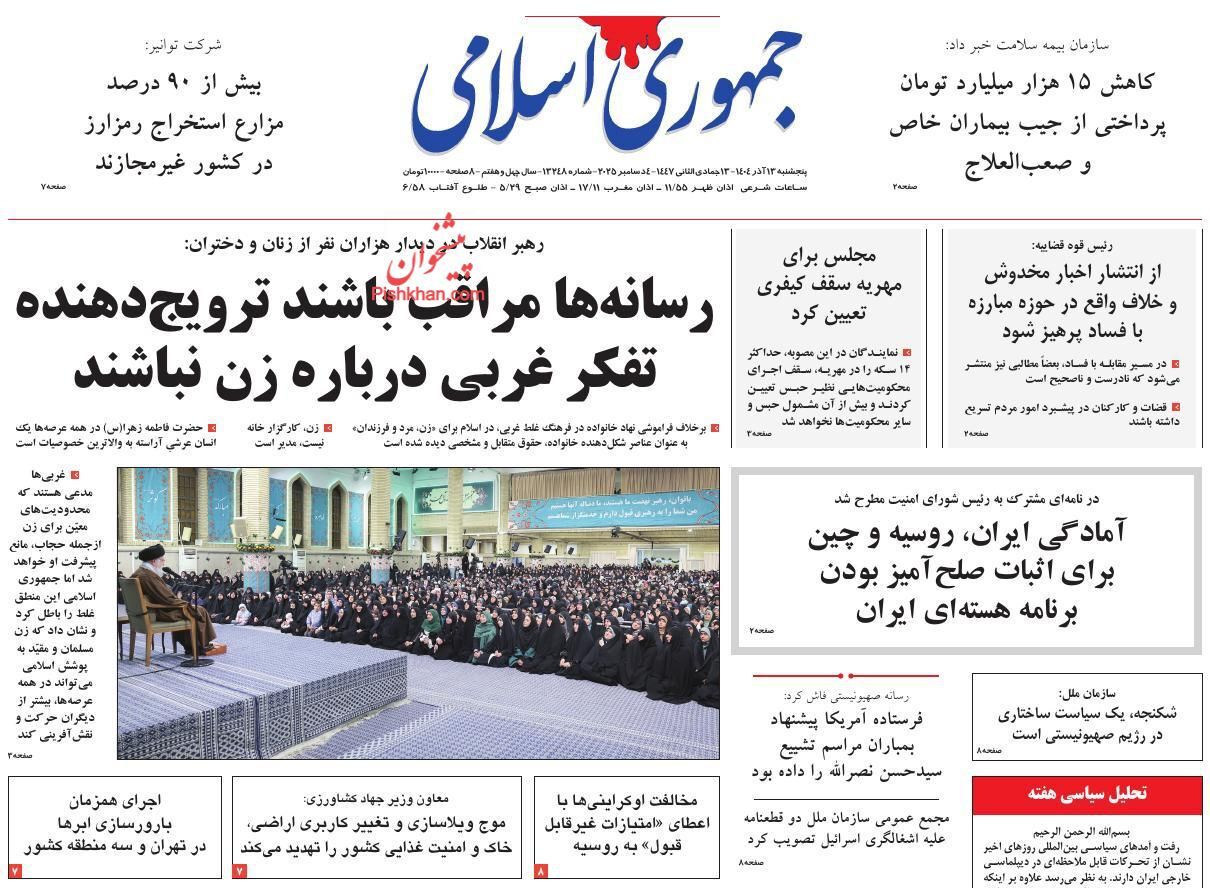 عناوین روزنامههای سیزدهم آذر ۱۴۰۴