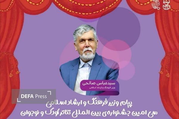 به گزارش دفاع‌پرس از همدان، «سید عباس صالحی» وزیر فرهنگ و ارشاد اسلامی پیامی خطاب به سی امین جشنواره بین المللی تئاتر کودک و نوجوان همدان منتشر کرد. متن این پیام به شرح زیر است:
