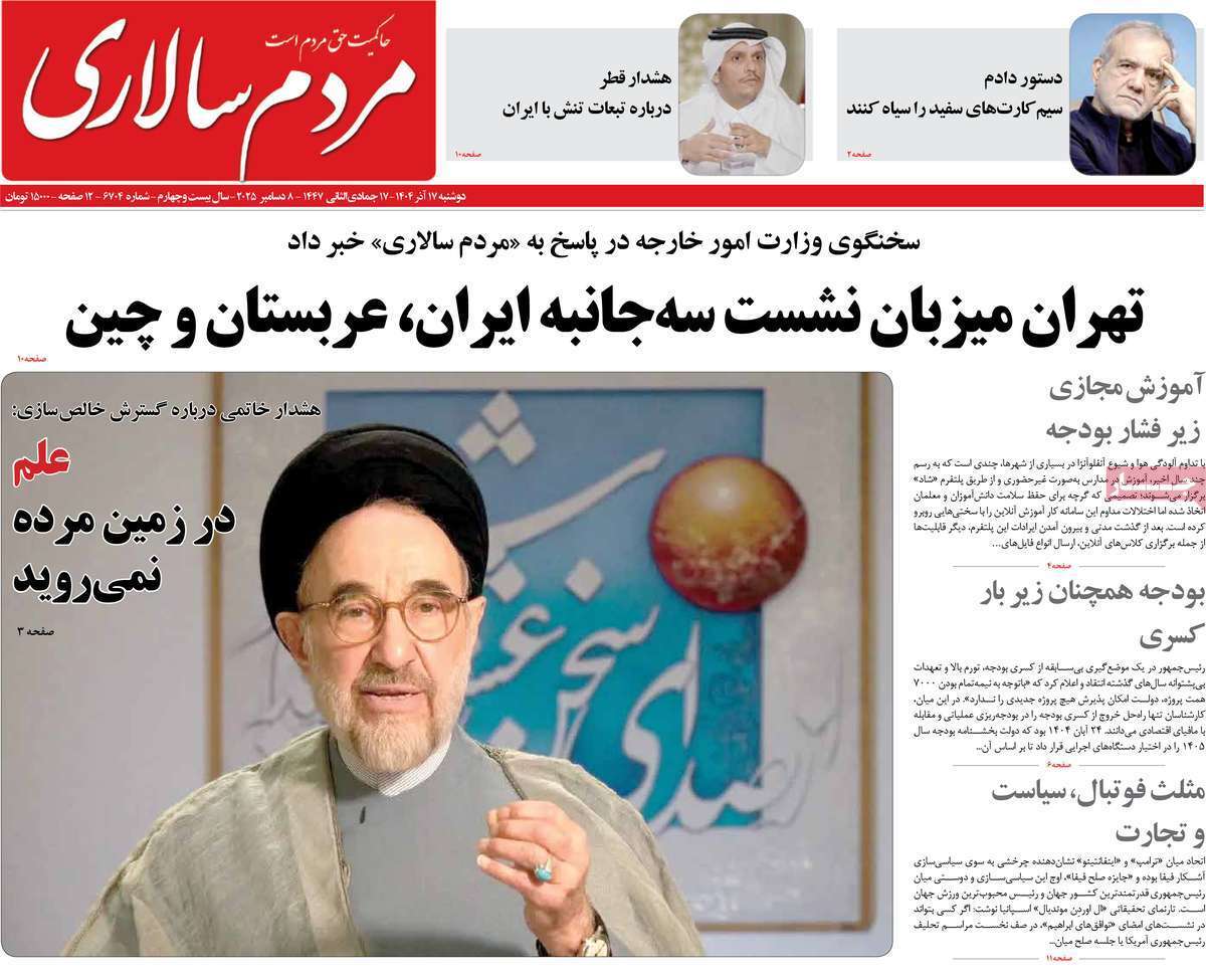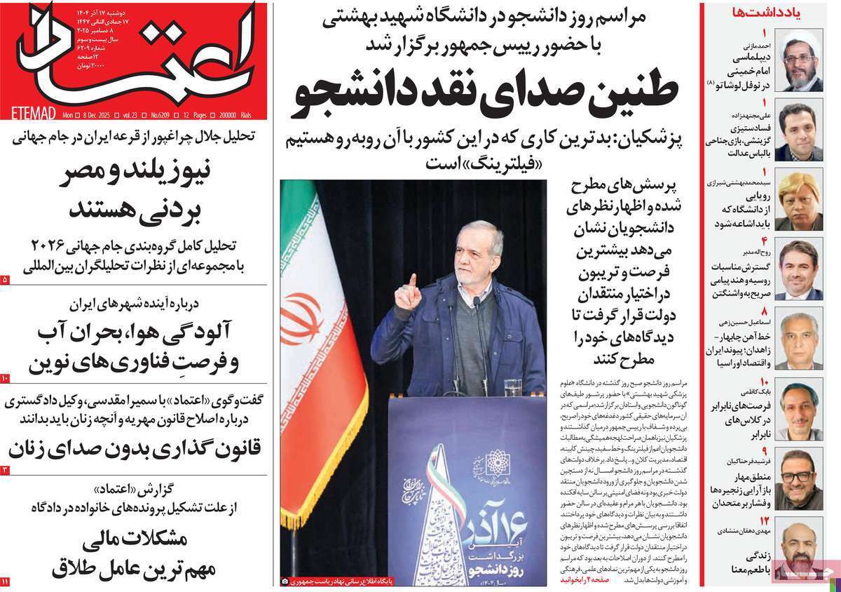 روزنامههای شانزدهم آذر ۱۴۰۴