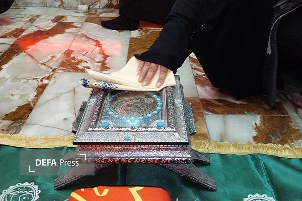 تصاویر/ غبارروبی حرم امامزادگان محمد و سکینه خاتون (ع)