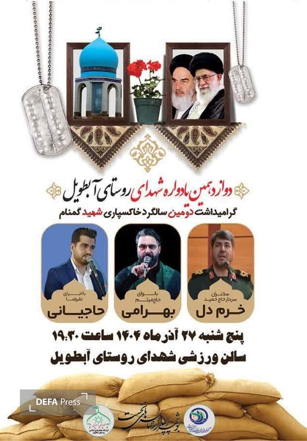 دوازدهمین مراسم یادواره شهدای سرافراز روستای آبطویل برگزار خواهد شد.