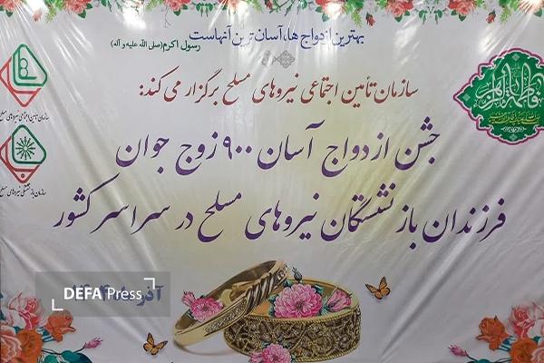 مراسم جشن ازدواج آسان و دستهجمعی ۹۰۰ زوج از فرزندان بازنشستگان نیروهای مسلح به همت سازمان تامین اجتماعی نیروهای مسلح خوزستان در اهواز برگزار شد.
