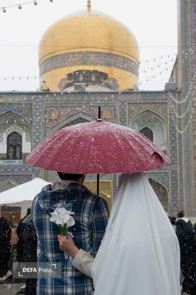 با ورود توده هوای سرد به شمال شرق کشور، صحنهای حرم مطهر رضوی شاهد بارش برف پاییزی بودند و این شرایط جوی جلوهای معنوی و چشمنواز به فضای حرم بخشید.