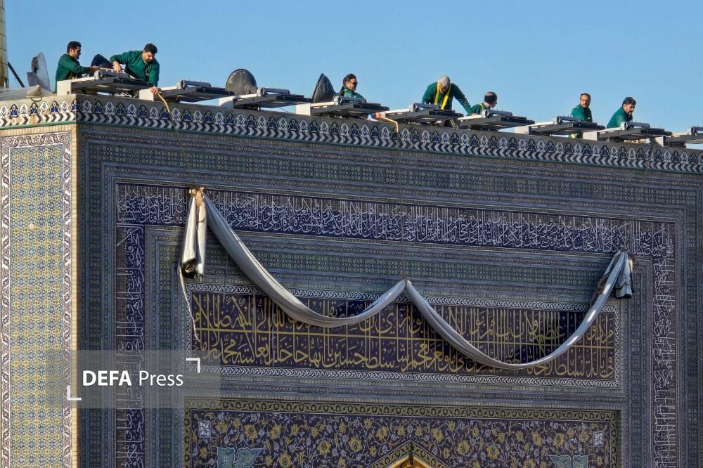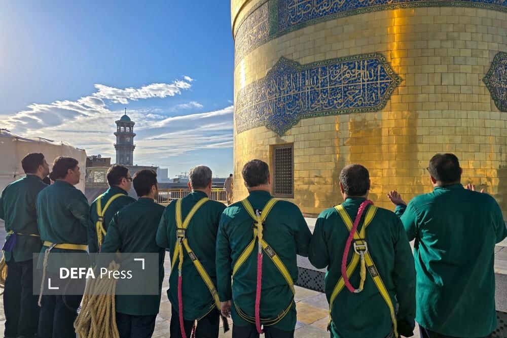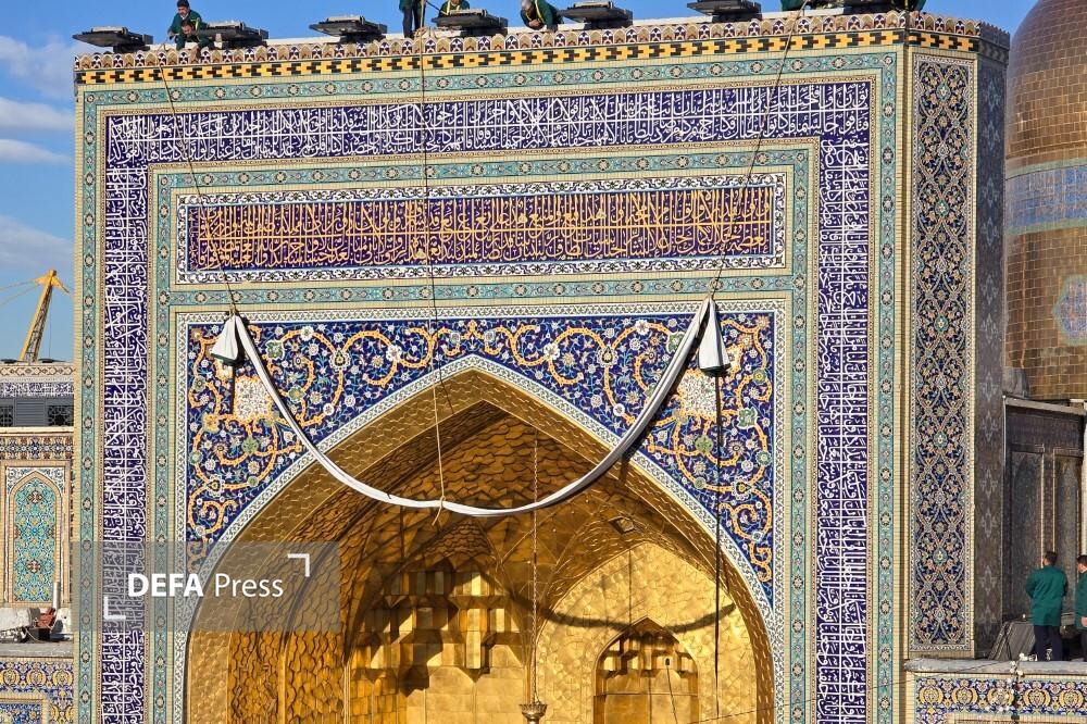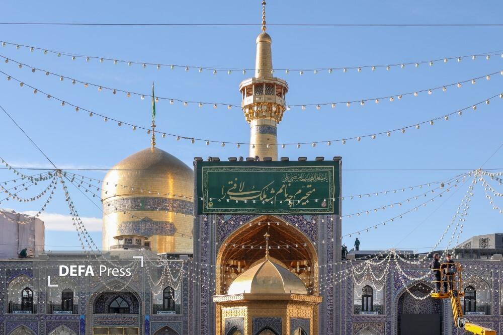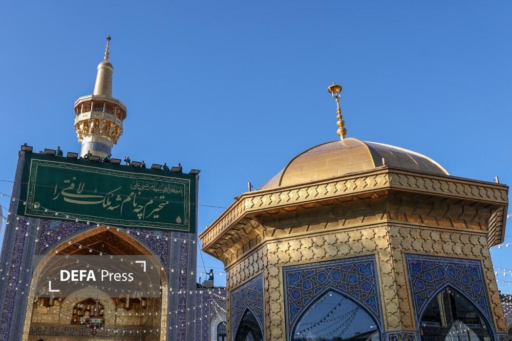 تصاویر/ کتیبهآرایی حرم مطهر رضوی در ایام ولادت امیرالمومنین علیهالسلام