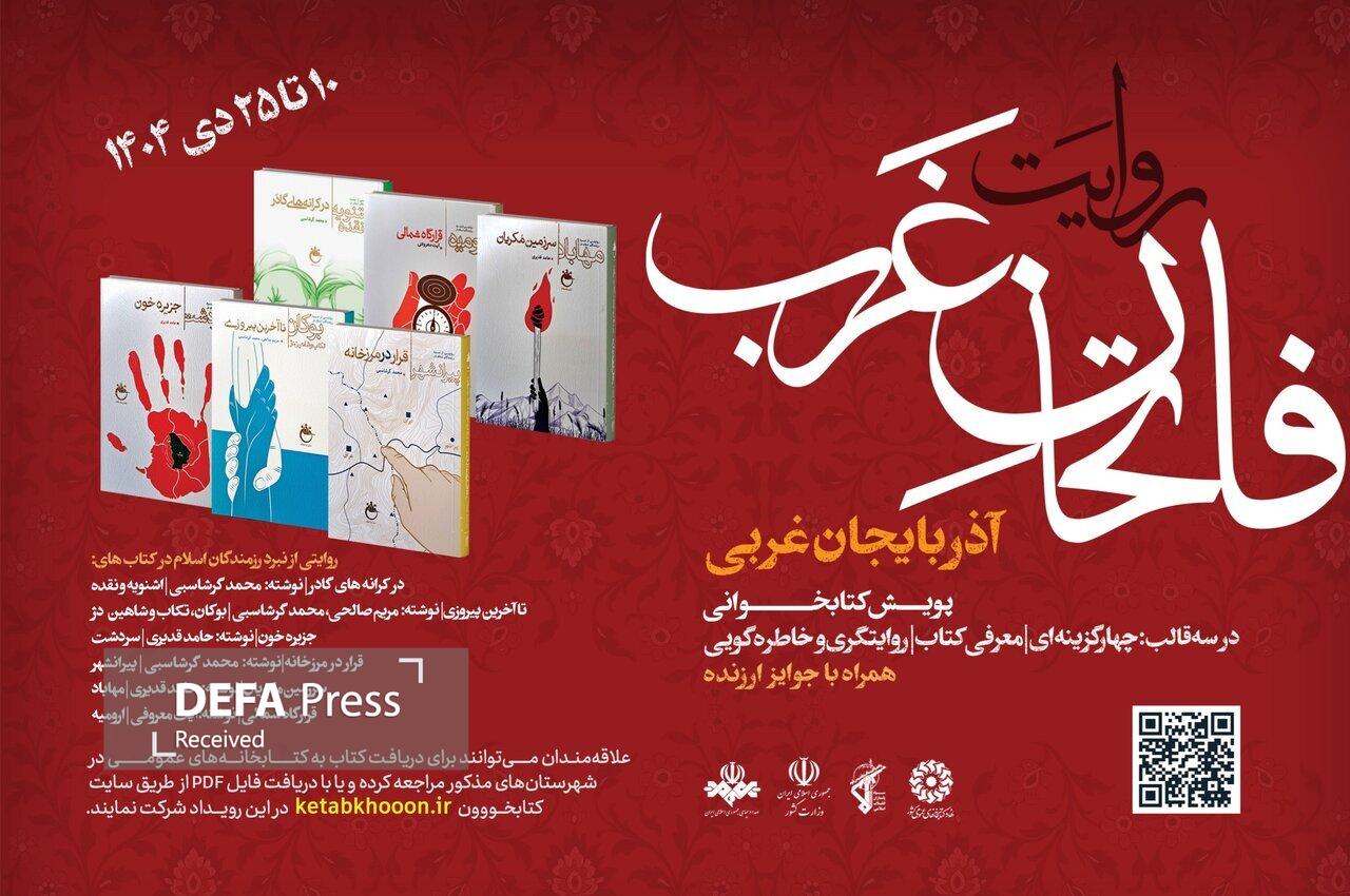 همچنین این پویش در استان آذربایجانغربی نیز با محوریت کتابهای «در کرانههای گادَر» نوشته محمد گرشاسبی در شهرهای اشنویه و نقده، «تا آخرین پیروزی» نوشته مریم صالحی و محمد گرشاسبی در شهرهای بوکان، تکاب و شاهیندژ، «جزیره خون» نوشته حامد قدیری در شهر سردشت، «نزدیکتر از برادر» نوشته مریم صالحی و مریم لطفی در شهر مریوان، «سرزمین مکریان» نوشته حامد قدیری در شهر مهاباد و «قرارگاه شمالی» نوشته آیت معروفی در شهر ارومیه برگزار میشود.