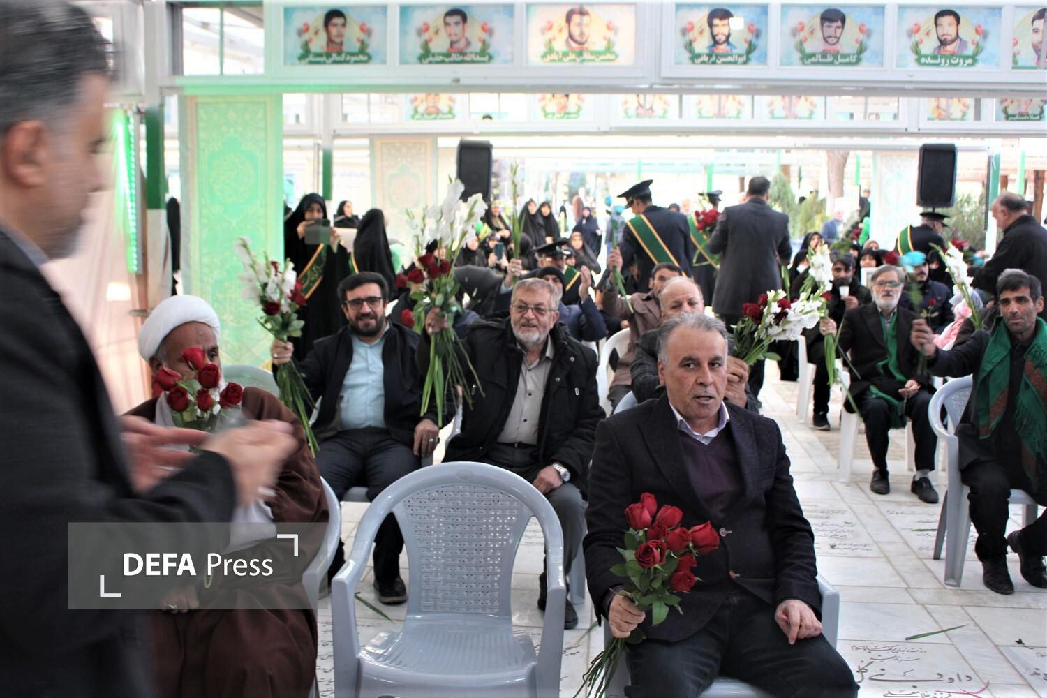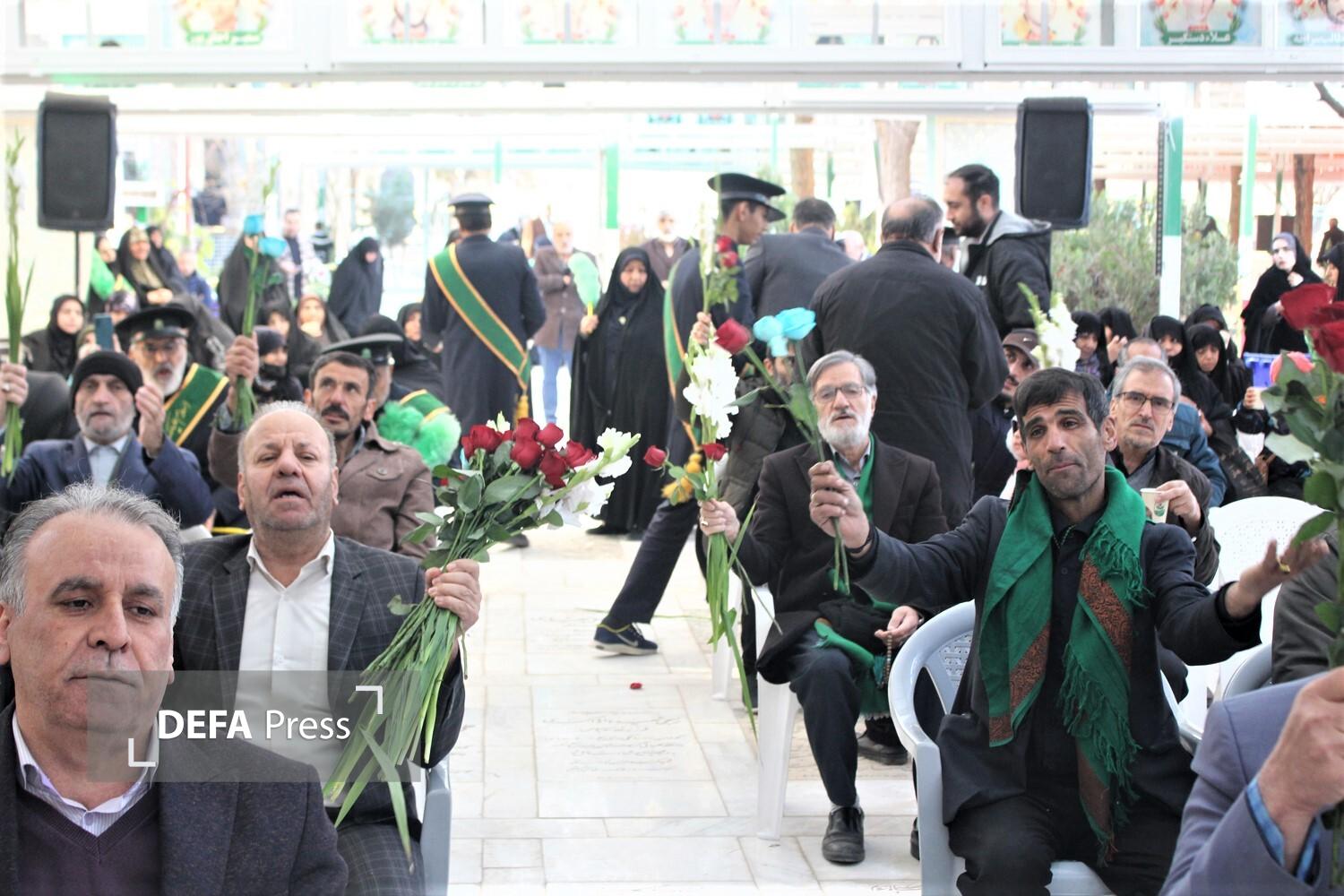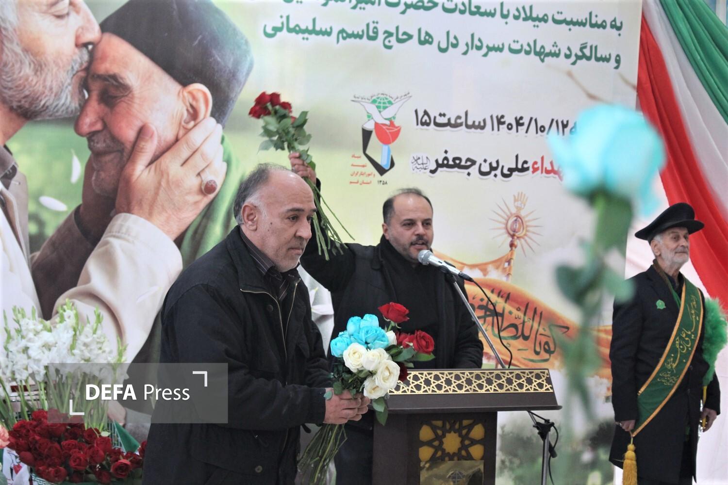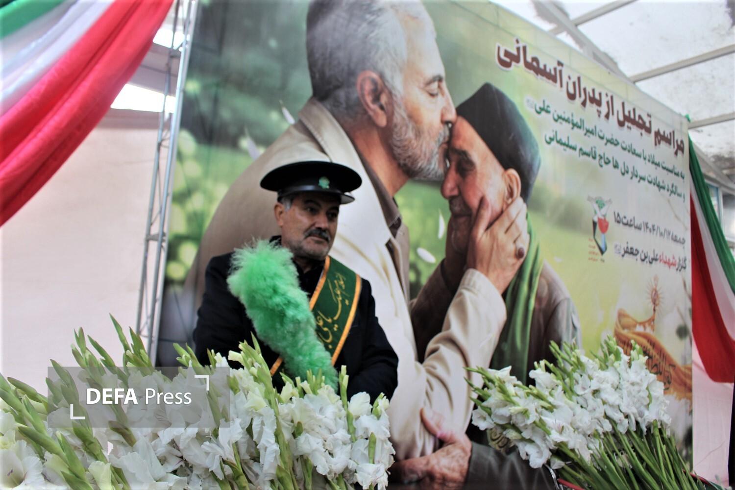 آیین تجلیل از پدران آسمانی و گلباران مزار شهدا در آستانه روز پدر و سالروز میلاد امام علی(ع) با حضور جمعی از کارکنان بنیاد شهید قم و پیشکسوتان دفاع مقدس در گلزار شهدای علی بن جعفر(ع) برگزار شد.