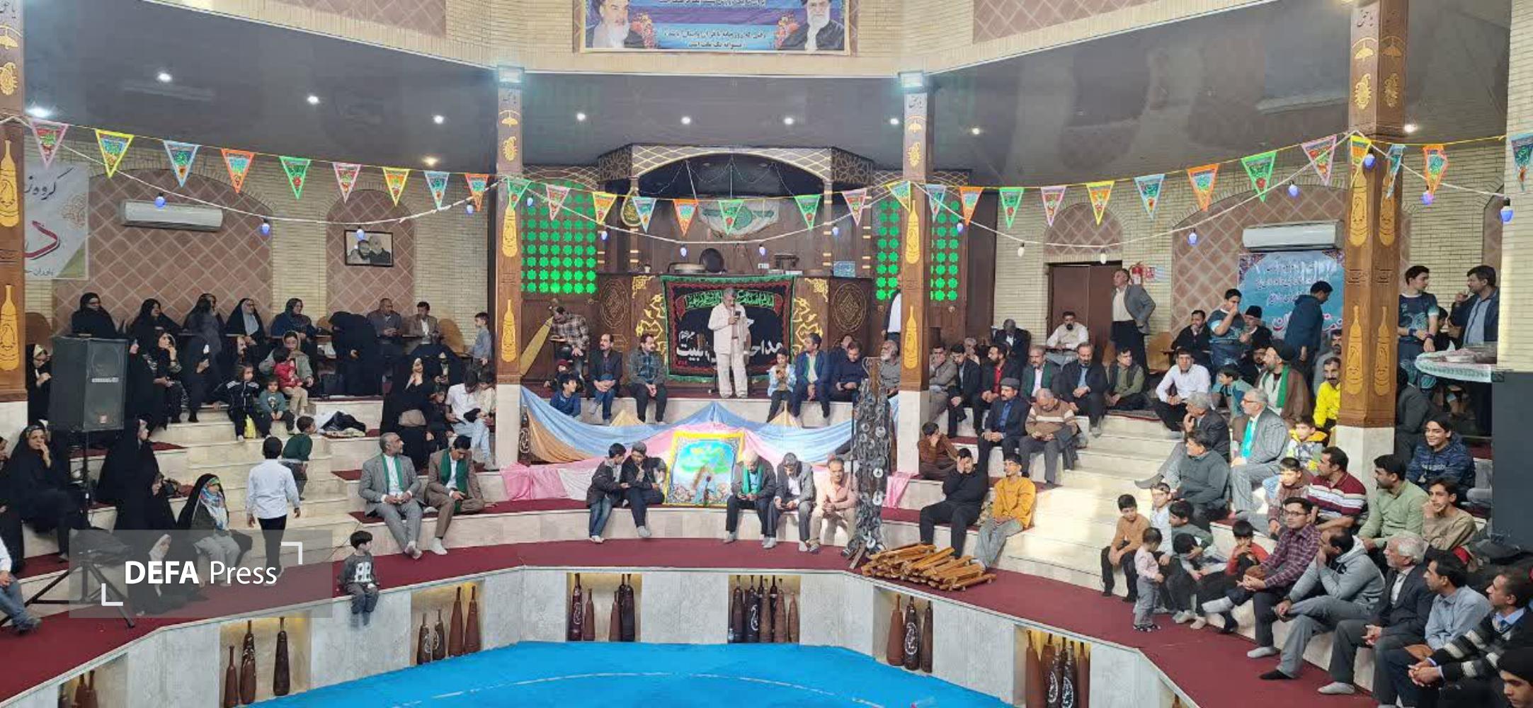 اجرای ورزش زورخانهای و مدیحه سرایی و مولودی خوانی مداحان بخشهای این مراسم بود
