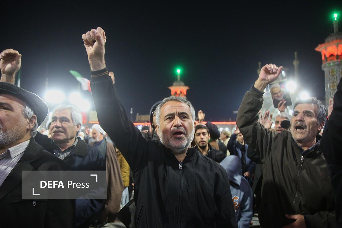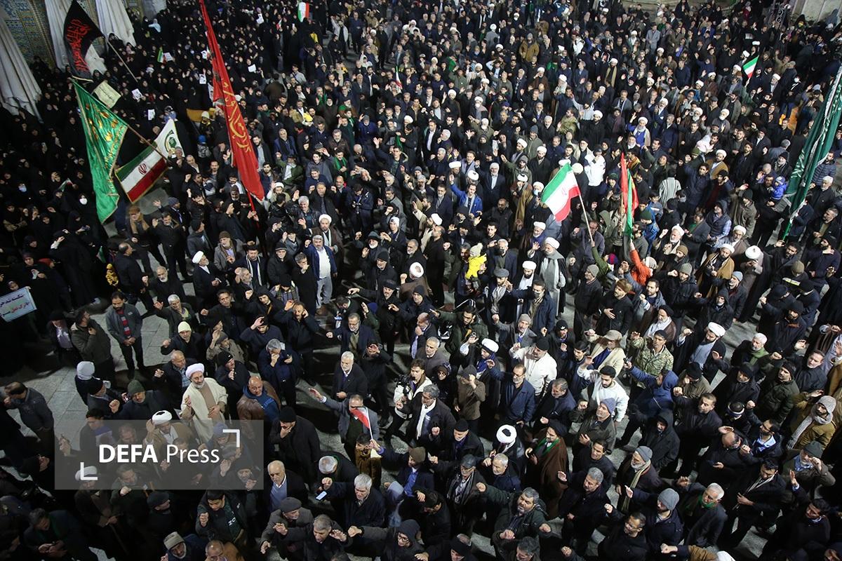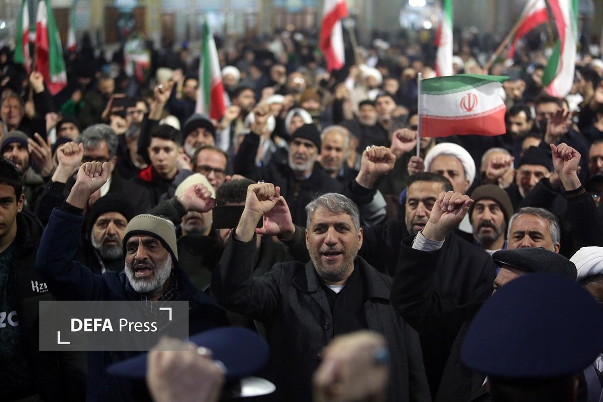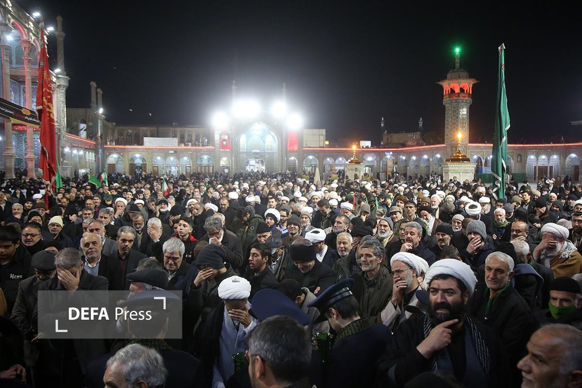 مردم انقلابی و همیشه در صحنه قم با همراهی هیئتهای مذهبی همزمان با شام رحلت حضرت زینب کبری(س) با اجتماع در صحن امام رضا(ع) حرم مطهر حضرت فاطمه معصومه(س) انزجار خود را از اقدامات شوم اغتشاش گران اعلام کردند.