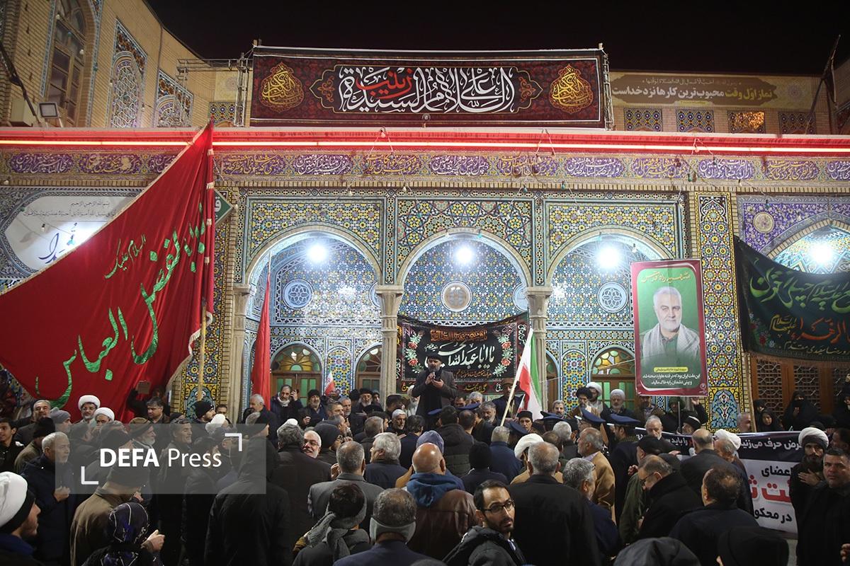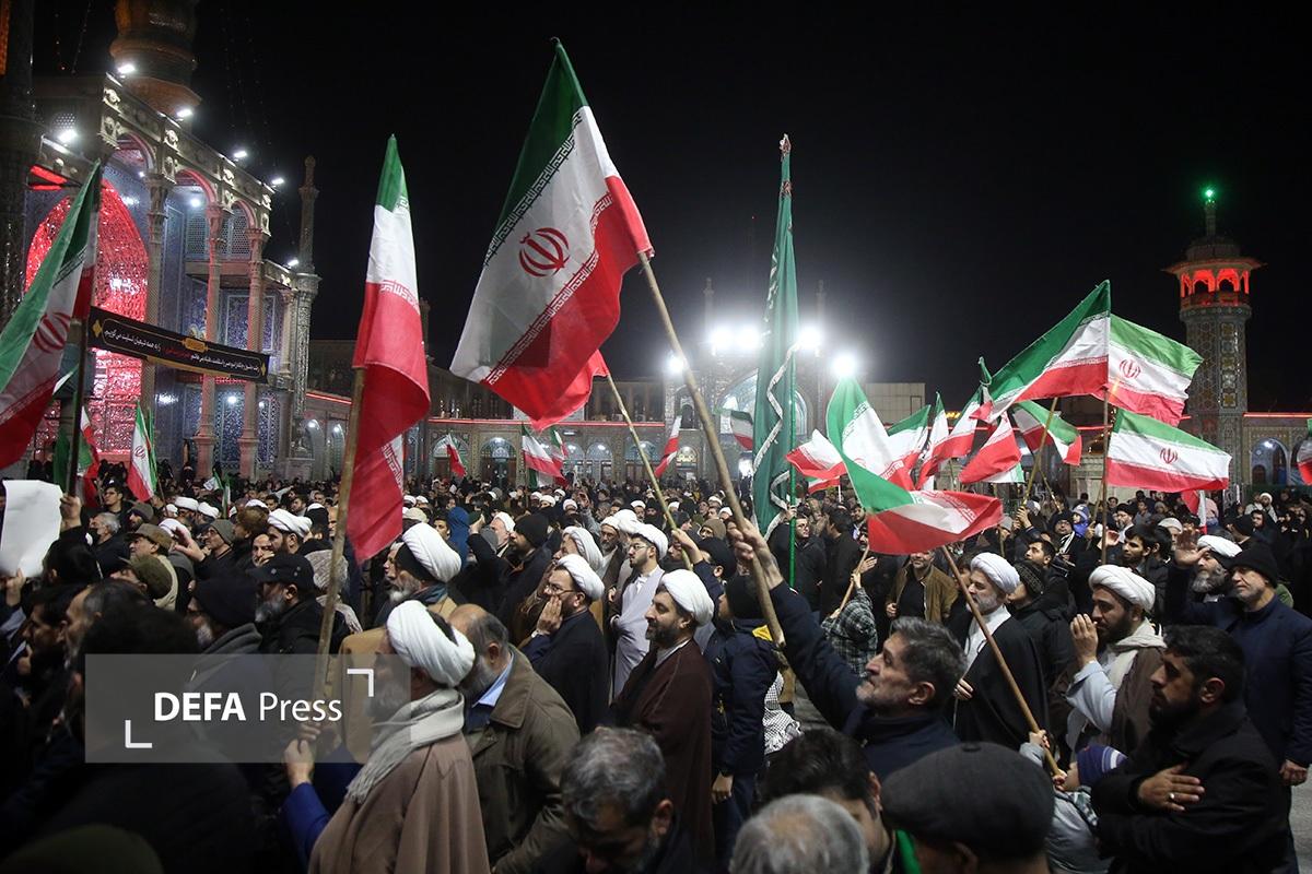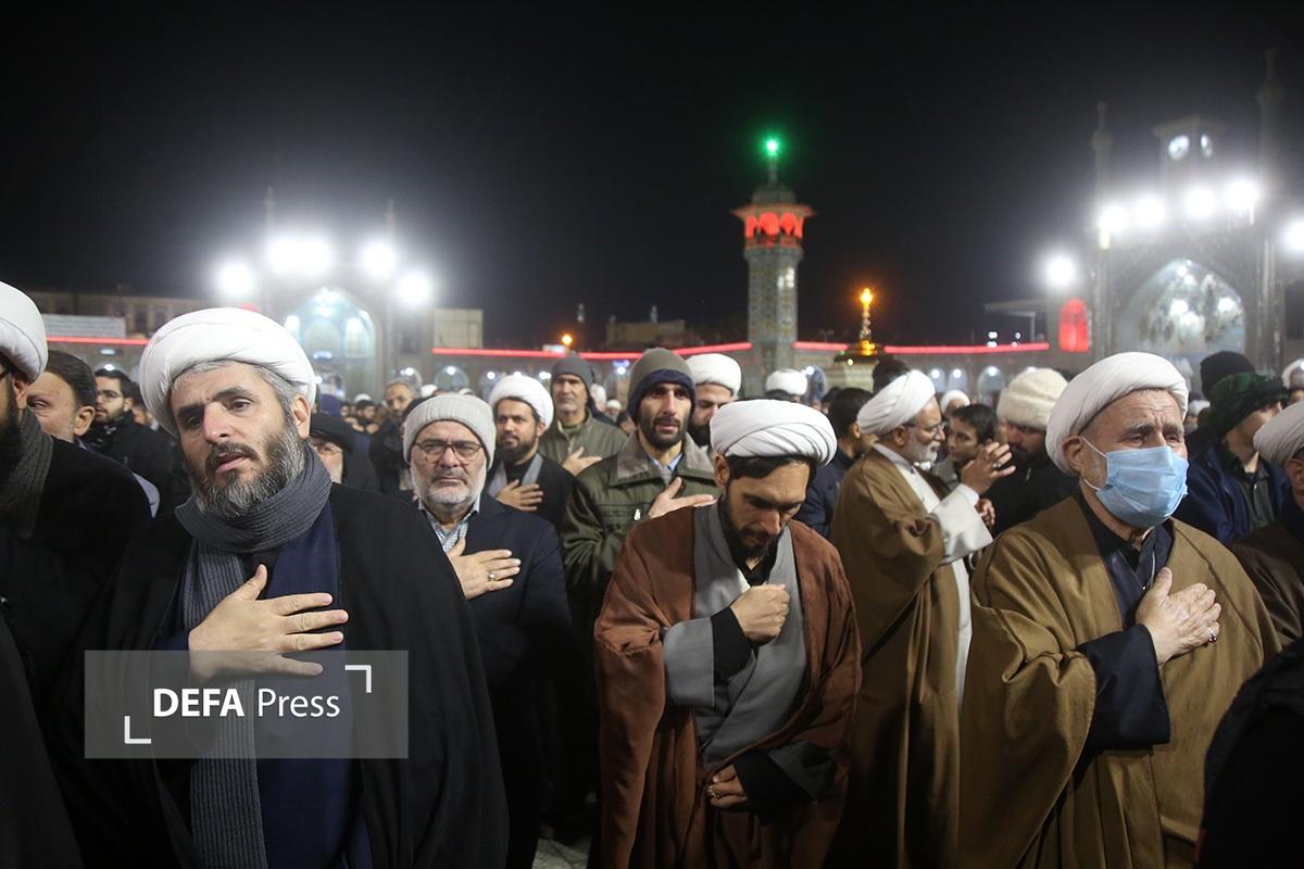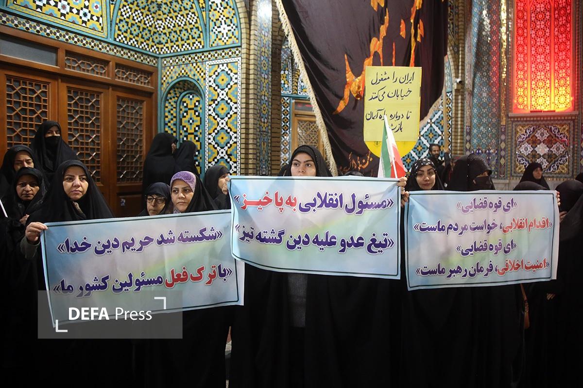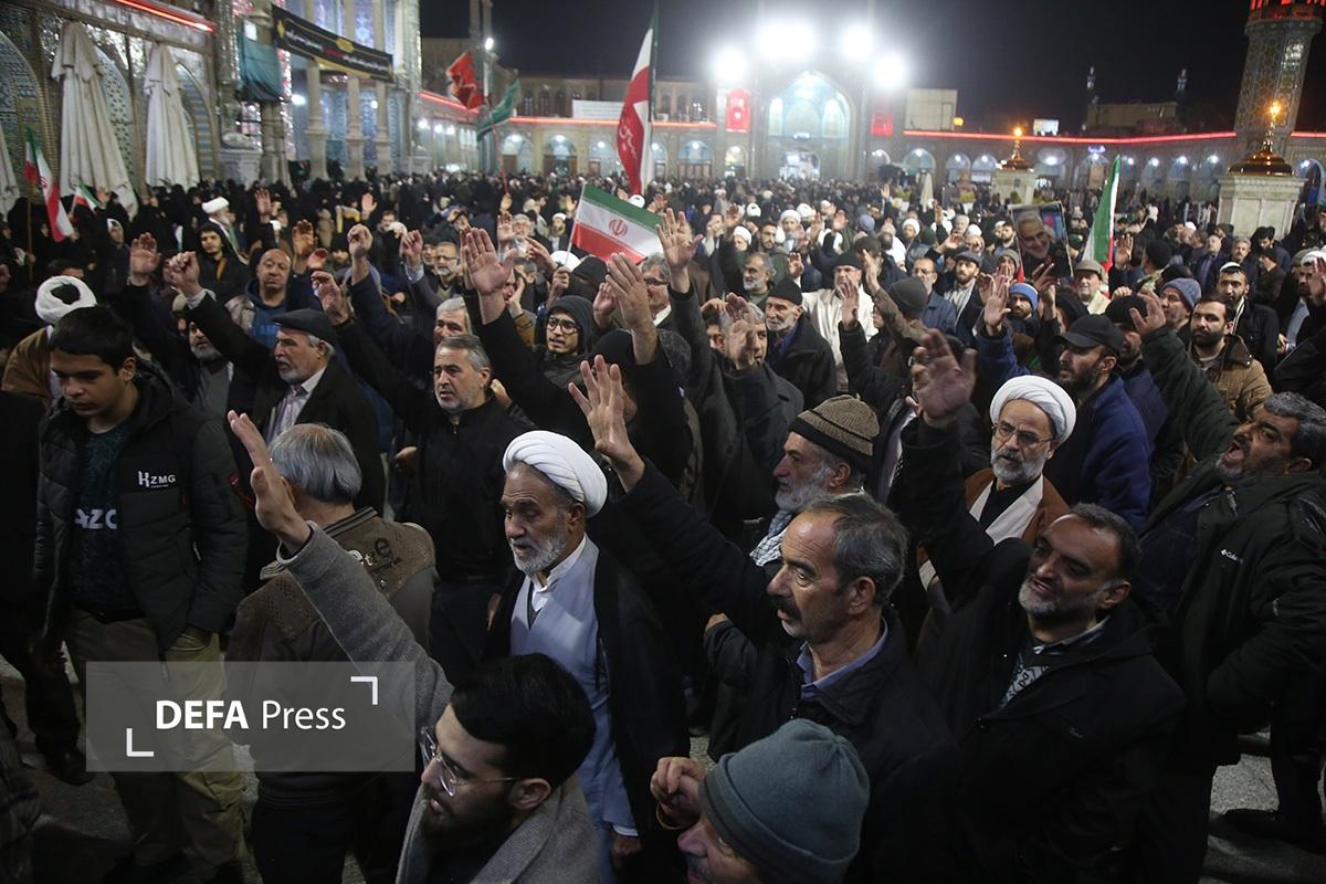 مردم انقلابی و همیشه در صحنه قم با همراهی هیئتهای مذهبی همزمان با شام رحلت حضرت زینب کبری(س) با اجتماع در صحن امام رضا(ع) حرم مطهر حضرت فاطمه معصومه(س) انزجار خود را از اقدامات شوم اغتشاش گران اعلام کردند.