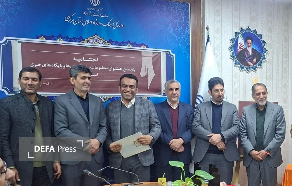 به گزارش خبرنگار دفاعپرس از اراک، آیین اختتامیه پنجمین جشنواره مطبوعات استان با حضور «دکتر روحانی» مدیرکل اطلاعات استان مرکزی، «مهرداد امیررضایی» نماینده معاونت مطبوعاتی وزارت فرهنگ و ارشاد اسلامی، هیئت داوران، «دکتر باقری» مدیرکل امور اجتماعی استانداری، «دکتر پیرحسینلو» مدیرکل آموزش و پرورش، «دکتر محمودی» سرپرست ادارهکل میراث فرهنگی استان، «غفاری» رئیس شورای اسلامی شهر اراک، «دکتر ایزدی» مدیرکل فرهنگ و ارشاد اسلامی استان، و جمعی از مدیران رسانهها و خبرنگاران برگزار شد.