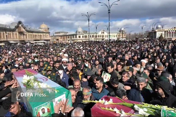 به گزارش خبرنگار دفاعپرس از همدان، مراسم تشییع پیکر مطهر «جواد بخشیان» از شهدای فراجا که با ضربات متعدد چاقو توسط اغتشاشگران به شهادت رسید و شهید «متینمنش» شهروندی که با ضرب و شتم به شهادت رسیدند امروز (شنبه) با حضور پرشور مردم دارالمومنین همدان در میدان امام خمینی(ره) برگزار شد.