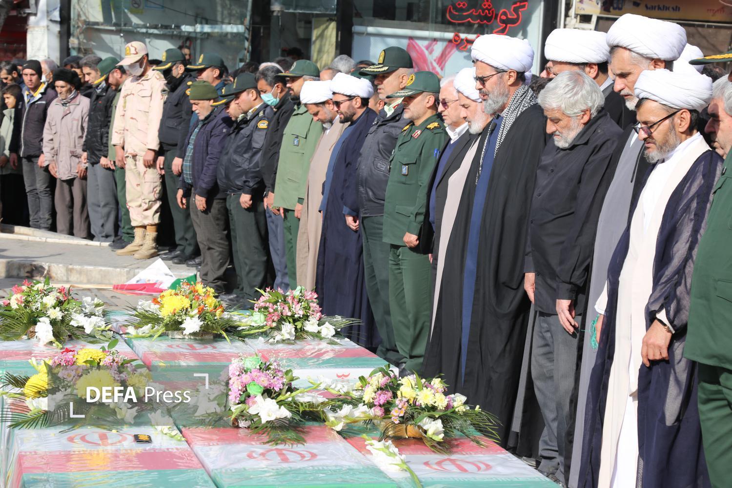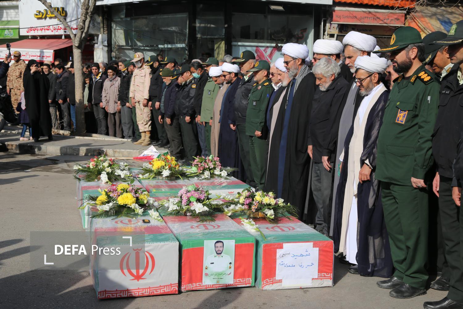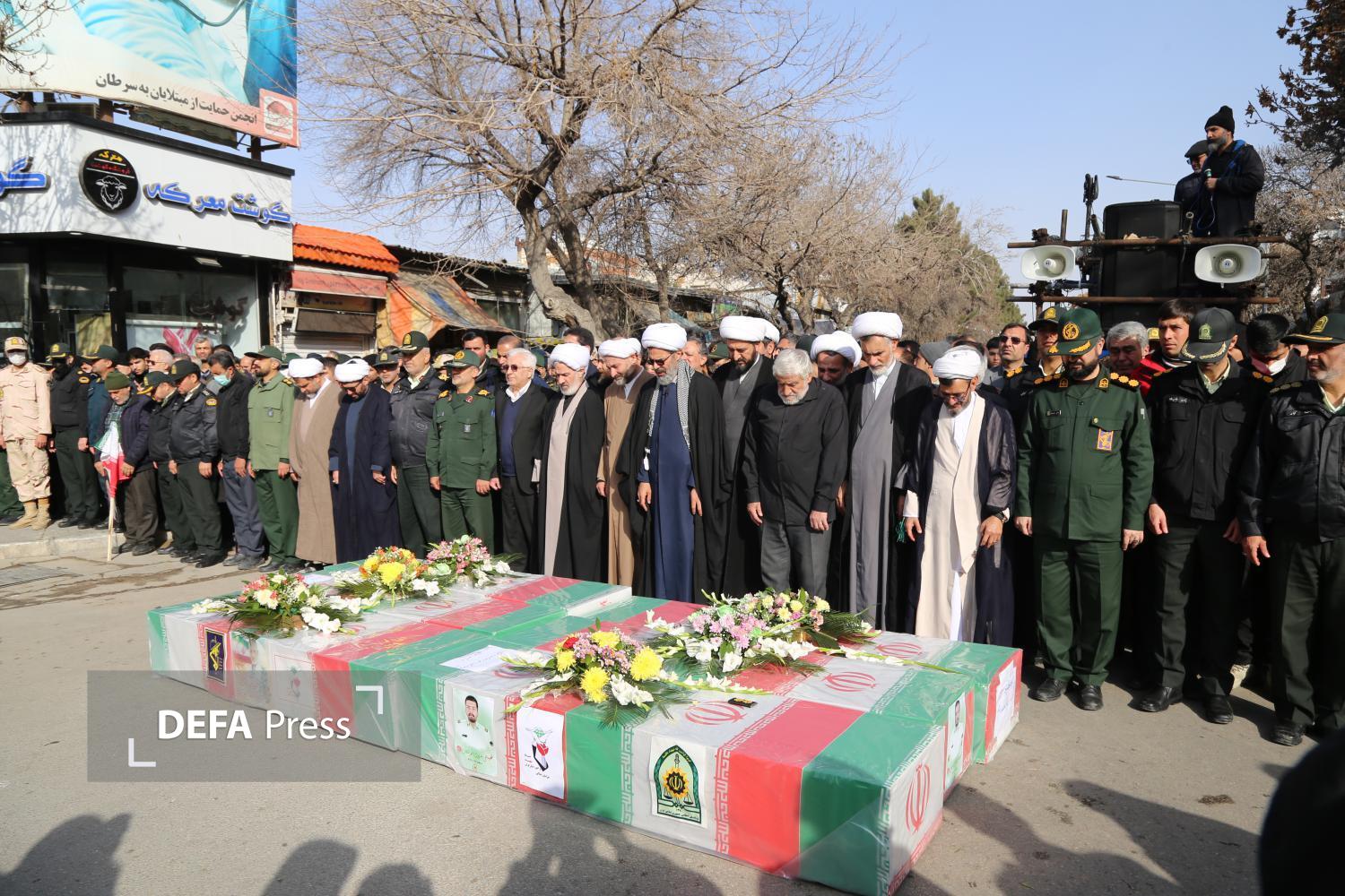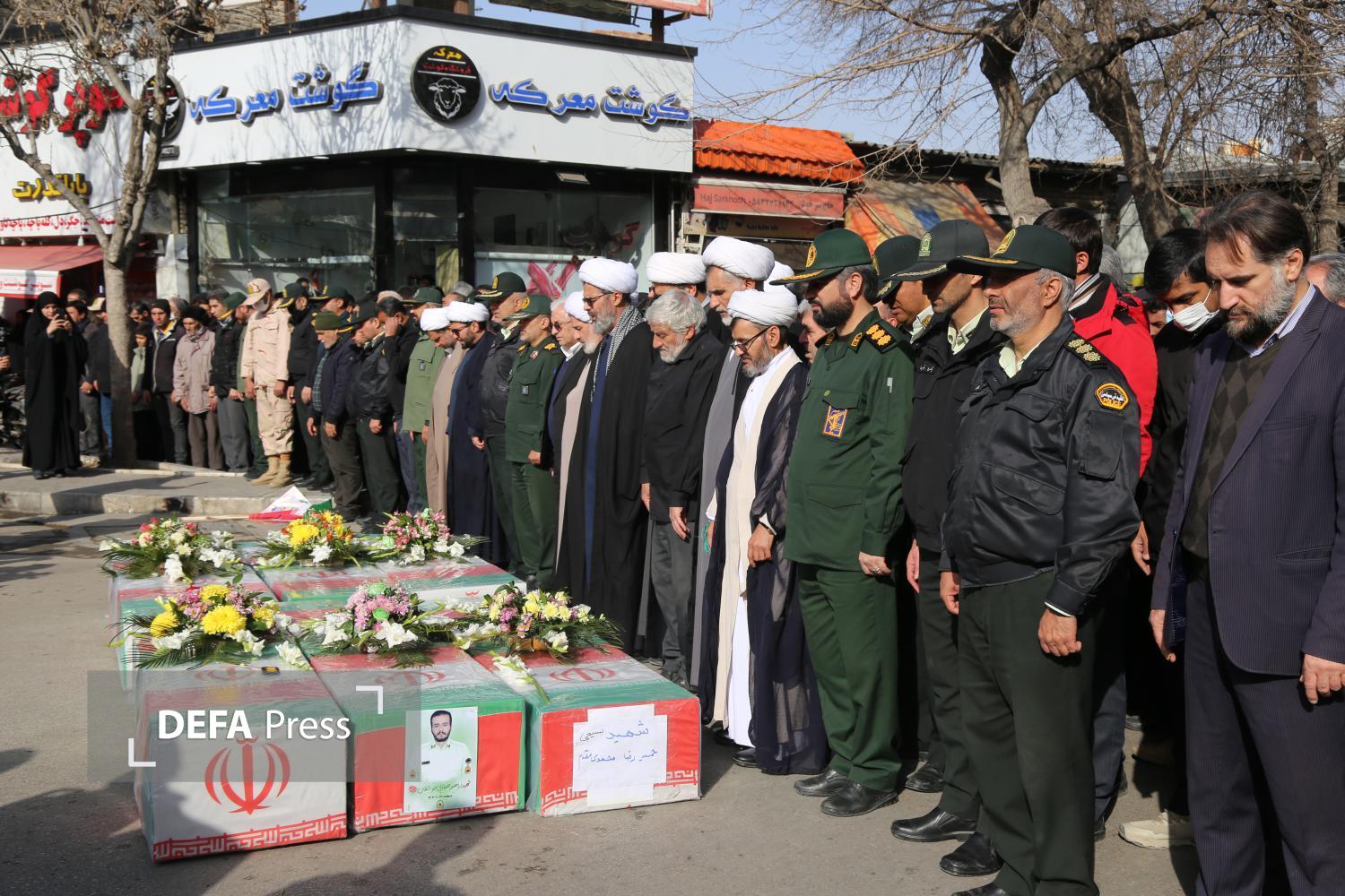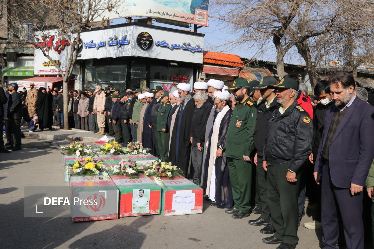 نماز میت بر پیکر پاک و مطهر شش شهید مدافع امنیت که در طی اغتشاشات اخیر توسط تروریستها به درجه رفیع شهادت نائل آمدند، با حضور نماینده ولی فقیه در خراسان شمالی و مردم شهیدپرور برگزار شد.