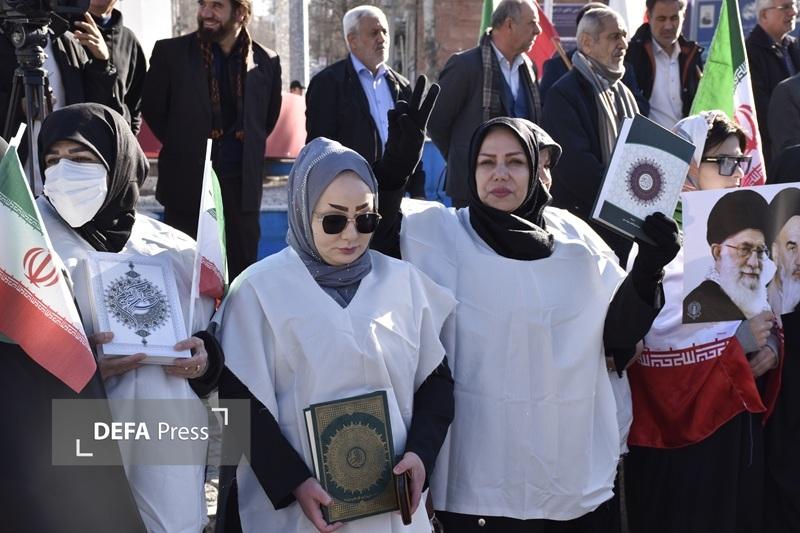 بانوان ایلامی در اجتماع بزرگ محکومیت اغتشاشات اخیر که در میدان ۲۲ بهمن ایلام برگزار شد، کفن پوش شرکت کردند.