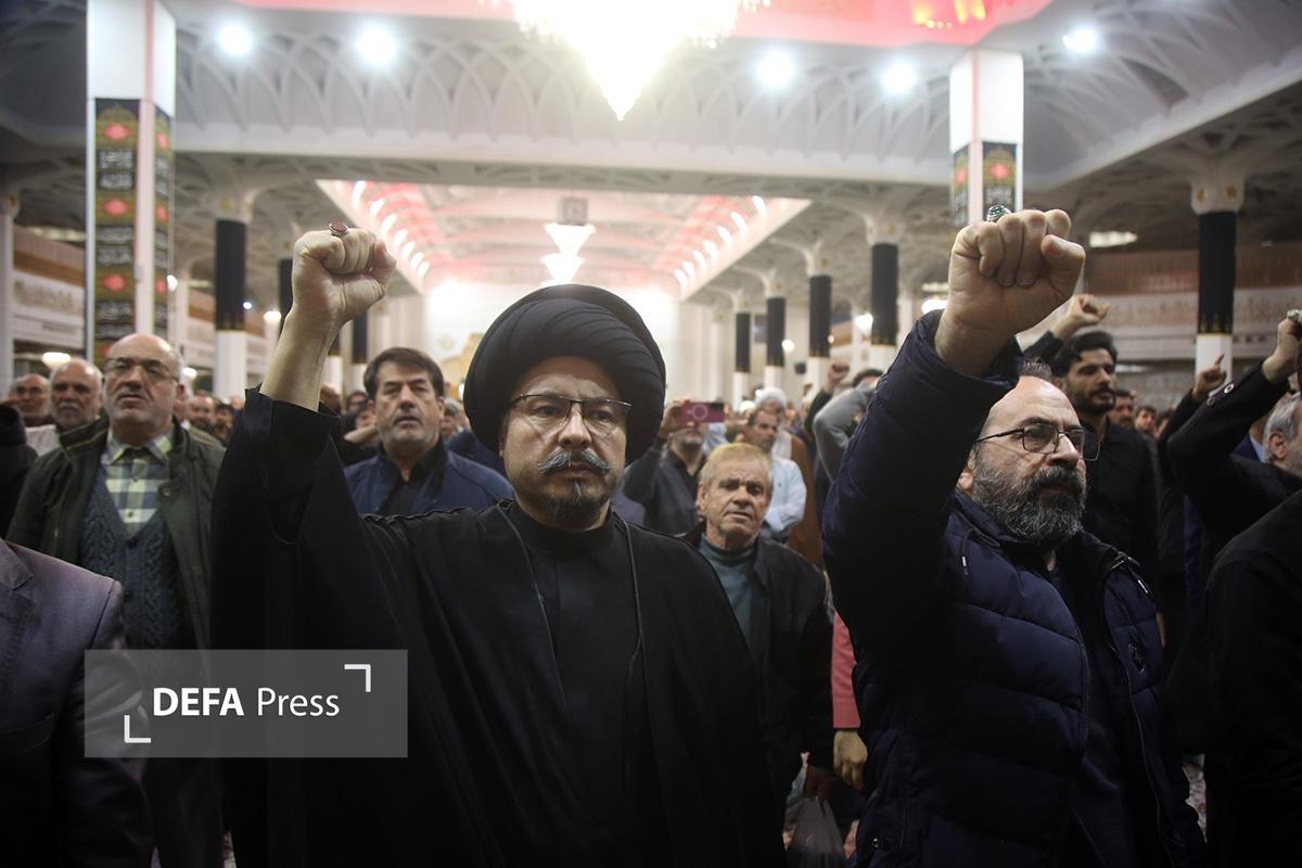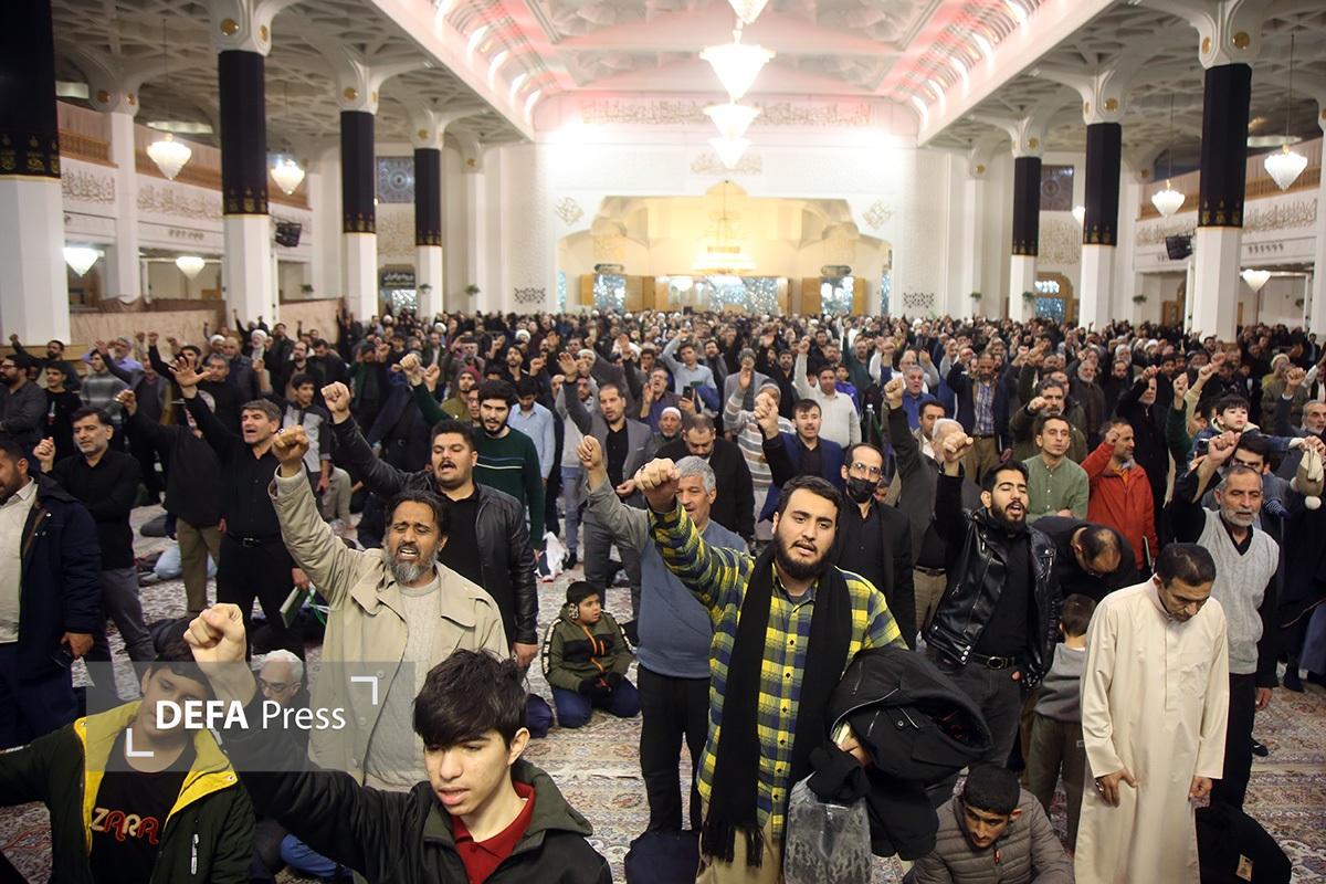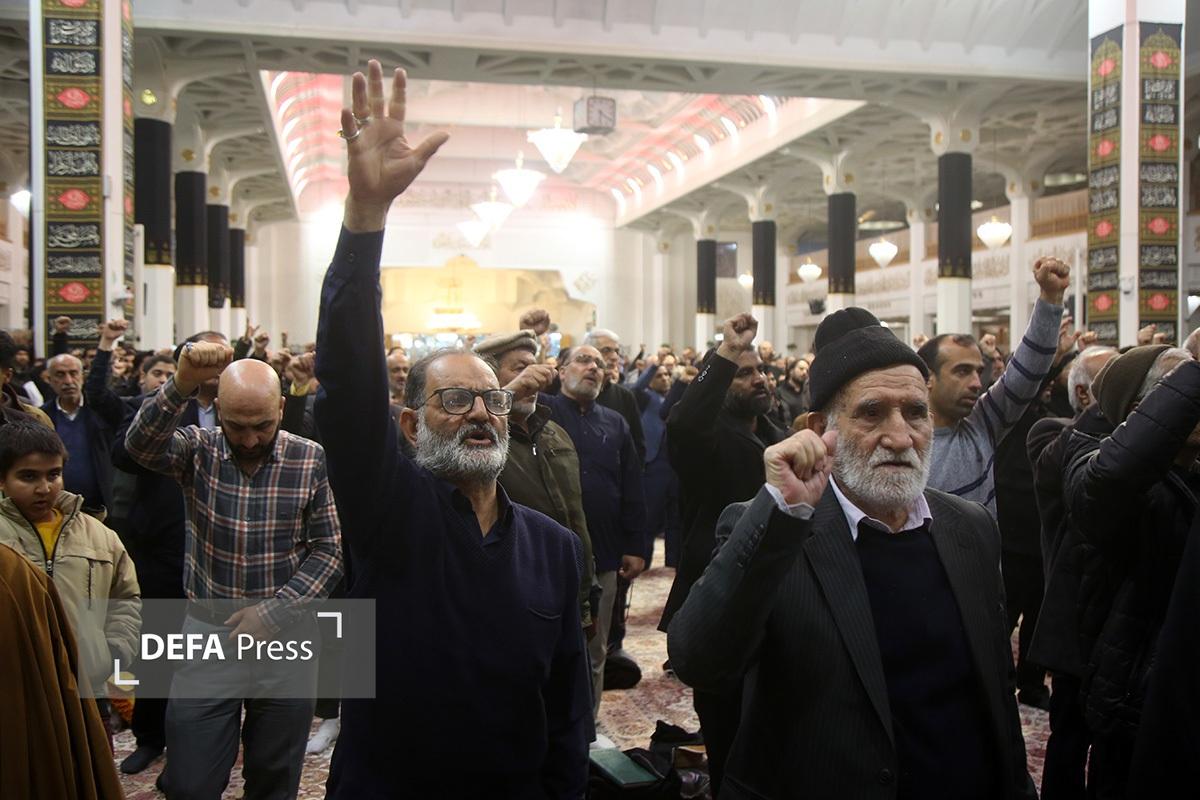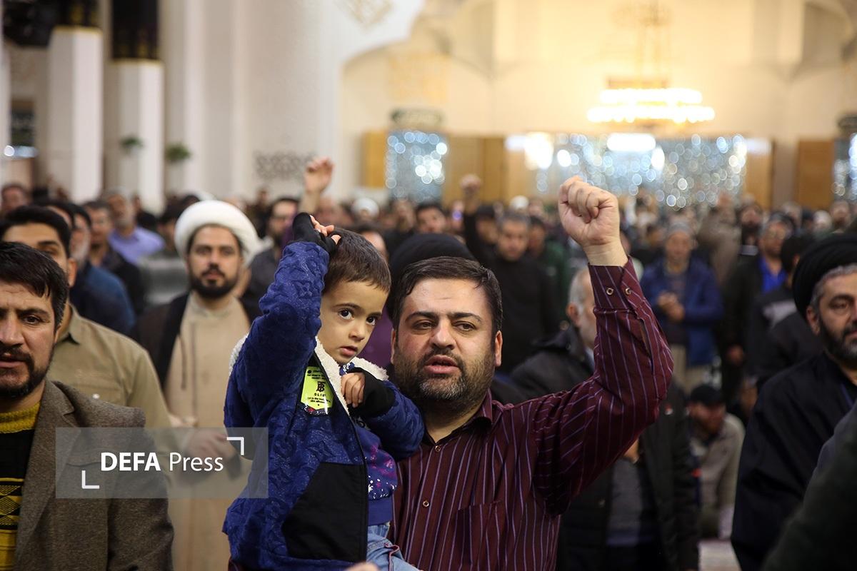 زائران و مجاوران حرم مطهر حضرت فاطمه معصومه(س) در مراسم عزاداری شام شهادت امام کاظم(ع) با شعار های مرگ بر آمریکا و مرگ بر اسرائیل انزجار خویش را از اغتشاشگران تروریست اعلام کردند.