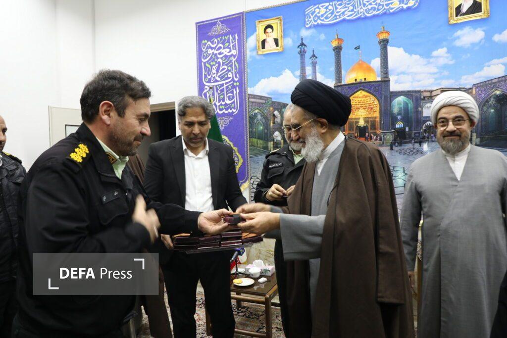 آیت الله «سید محمد سعیدی» تولیت آستان مقدس حضرت فاطمه معصومه(س) با اهدای لوح و هدایایی از فداکاری فرماندهی انتظامی استان قم و خانواده های معظم شهدای انتظامی استان تجلیل کرد.