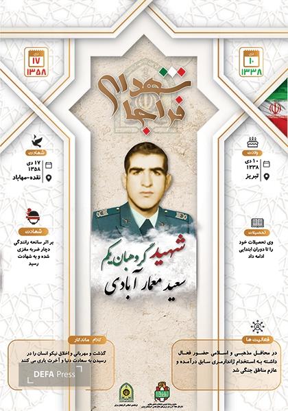 اینفوگرافی شهید گروهبانیکم «سعید معماری آبادی» توسط اداره کل حفظ آثار و نشر ارزشهای دفاع مقدس و مقاومت استان آذربایجان شرقی با همکاری فراجا استان تهیه و منتشر شد.