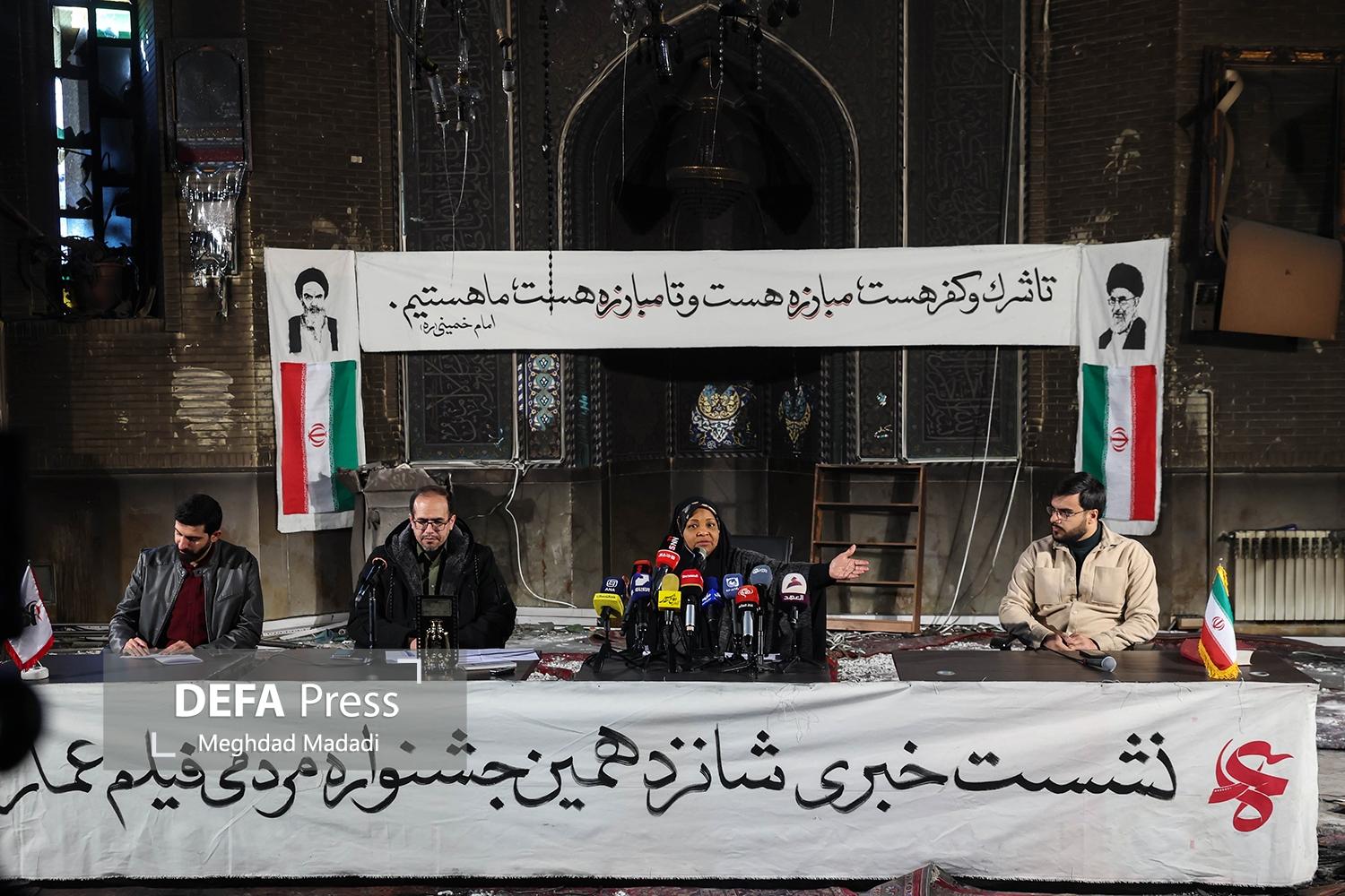 نشست خبری شانزدهمین جشنواره مردمی فیلم عمار صبح امروز در مسجد ابوذر تهران که در مدت اغتشاشات هفته گذشته بدست مزدوران رژیم صهیونی به آتش کشیده شده بود برگزار شد.