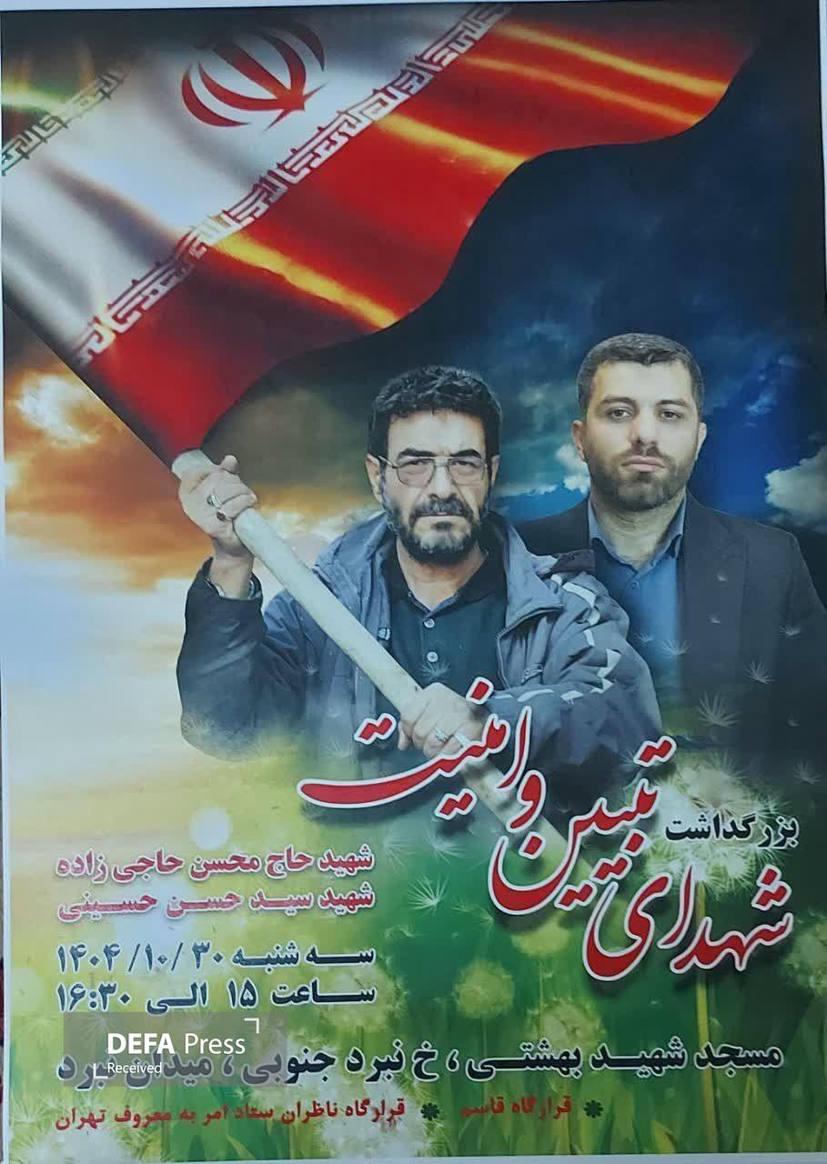 مراسم بزرگداشت شهدای تبیین و امنیت؛ شهیدان محسن حاجی‌زاده و سید حسن حسینی در مسجد شهید بهشتی خیابان نبرد برگزار می‌شود.