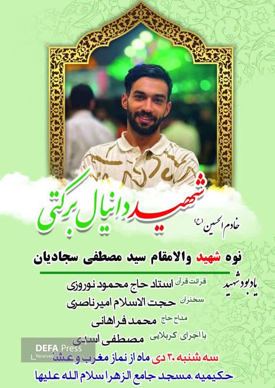 مراسم بزرگداشت شهید امنیت «دانیال برکتی» برگزار میشود