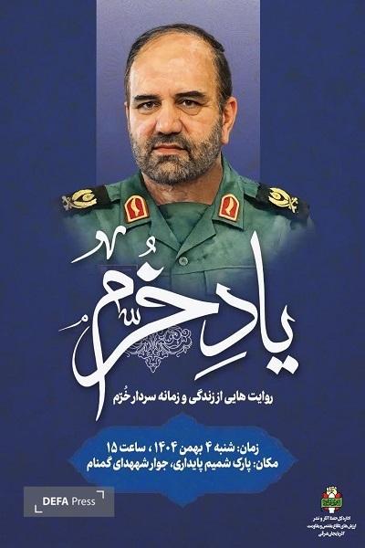 به گزارش خبرگزاری دفاعپرس از آذربایجان شرقی، روایتهایی از زندگی و زمانه سردار خرّم استاندار جهادی و فرمانده انقلابی آذربایجان شرقی شنبه ۴ بهمن ماه ۱۴۰۴ ساعت ۱۵ در جوار شهدای گمنام واقع در پارک شمیم پایداری برگزار خواهد شد.