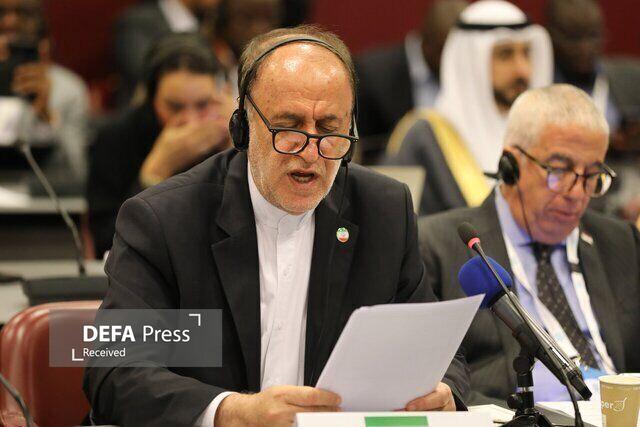 حاجی بابایی عنوان کرد: در چنین فضایی، جمهوری اسلامی ایران یکی از اهداف اصلی این راهبرد شیطانی آمریکا بوده است. اقدامات مغایر با منشور ملل متحد توسط آمریکا، از جمله تهدید به توسل به زور، تحریمهای غیرقانونی و اقدامات تجاوزکارانه مستقیم و غیرمستقیم علیه کشور من، طی سالهای اخیر و بهویژه در دوره اخیر، بهطور بیسابقهای تشدید شده است. تجاوز نظامی مستقیم به تأسیسات هستهای صلحآمیز جمهوری اسلامی ایران در میانه جنگ تجاوزکارانه رژیم صهیونیستی علیه کشور ما در ژوئن ۲۰۲۵، نمونهای آشکار از این قانونگریزی است.