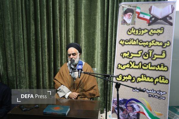 تصاویر/ خروش حوزویان اصفهان در محکومیت اهانت به قرآن و مقدسات اسلامی و حمایت از رهبری