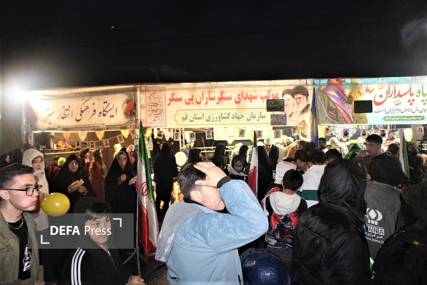 مسیر پیاده روی مسجد مقدس جمکران در نیمه شعبان آکنده از صحنه های دلدادگی و عشق به حضرت صاحب الزمان(عج) است و تصاویر شهیدان با نام «مهدی» نیز در وسط بلوار به چشم می خورد.