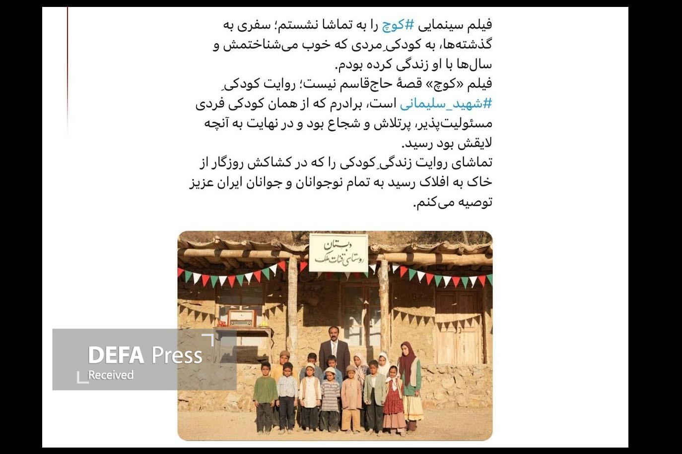 فیلم «کوچ» قصه حاجقاسم نیست؛ روایت کودکی شهید سلیمانی است؛ برادرم که از همان کودکی فردی مسئولیتپذیر، پرتلاش و شجاع بود و در نهایت به آنچه لایقش بود رسید.
