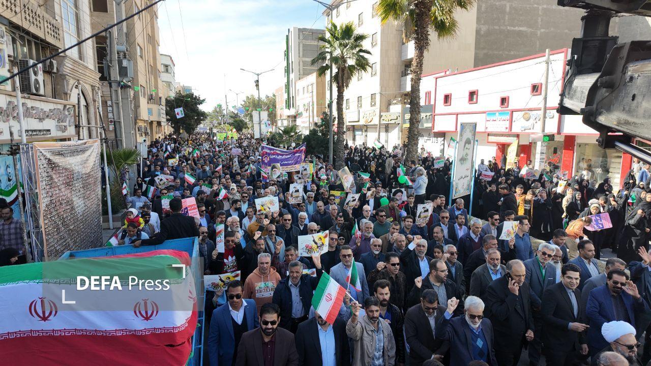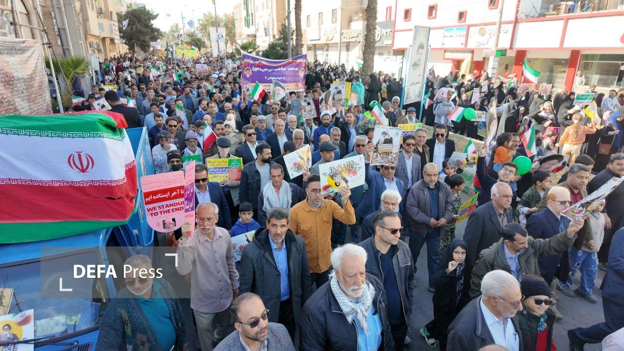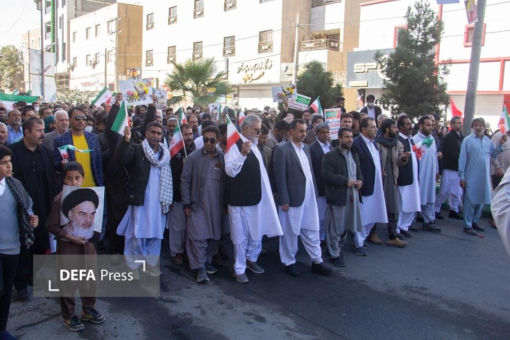 مراسم راهپیمایی ۲۲ بهمن ۱۴۰۴ همزمان با سراسر کشور با شعار " ایران مقتدر، ملت پیروز " با حضور اقشار مختلف مردم شیعه و سنی در سیستان و بلوچستان آغاز شد.