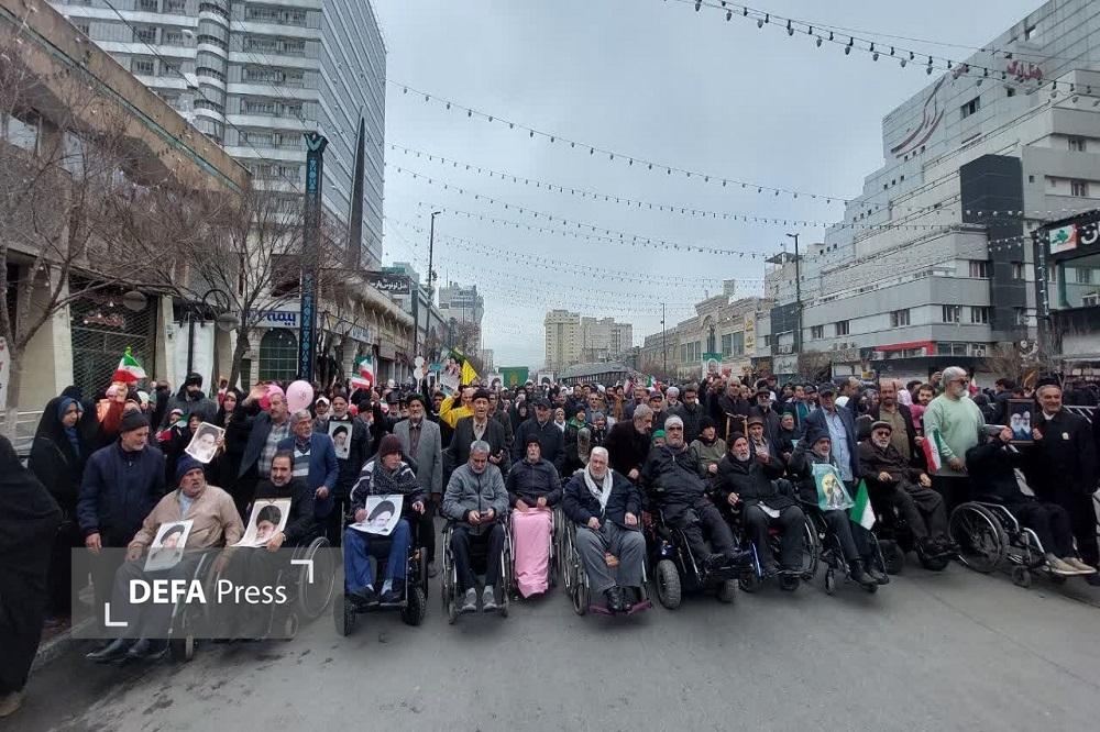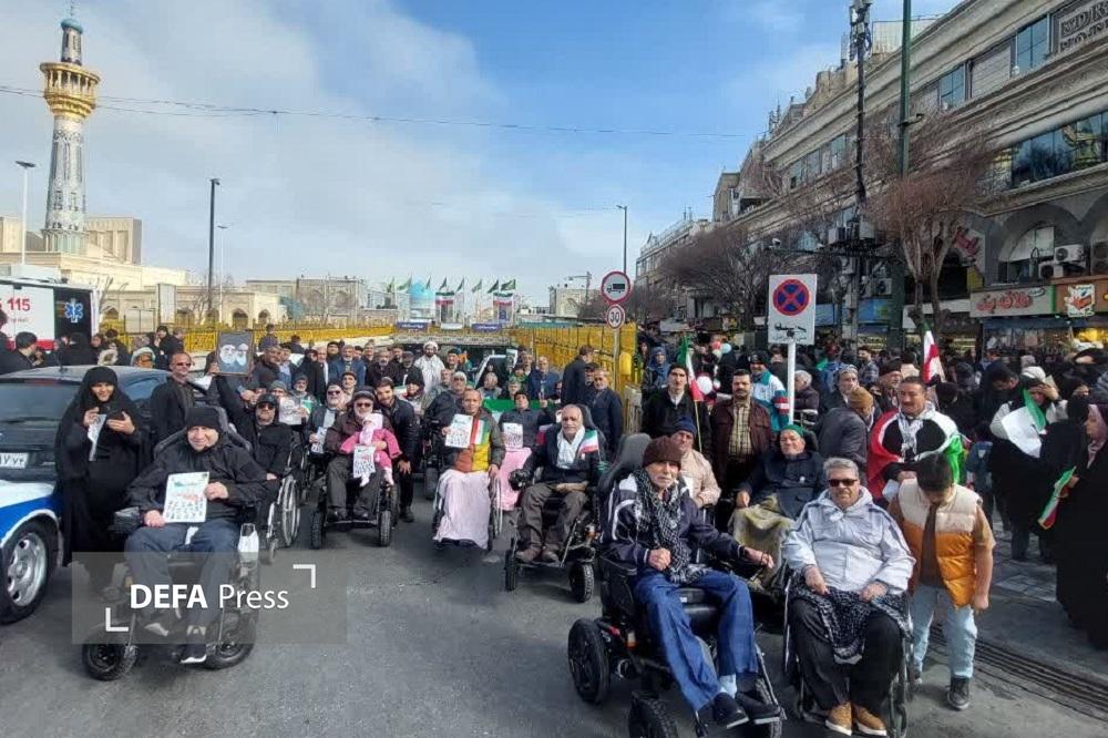 جانبازان نخاعی مشهدالرضا دوشادوش قشرهای مختلف مردم در راهپیمایی یومالله ۲۲ بهمن حضور پیدا کردند.