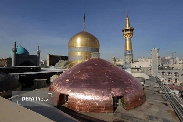 نمای بیرونی گنبد که در اصل آجری بوده، در دوره پهلوی دوم با ورقهای مسی پوشانده شد تا علاوه بر افزایش استحکام و حفاظت، جلوهای متمایز به این بخش از حرم ببخشد. با گذشت زمان و در اثر شرایط محیطی، این پوسته مسی دچار آسیبهایی شده است؛ از جمله تغییر رنگ ناشی از اکسیداسیون مس، طبلهکردن و تغییر شکل برخی ورقهای مسی و فرسایش بندکشیها که در مجموع، منظر بیرونی گنبد را تحت تأثیر قرار داده بود.