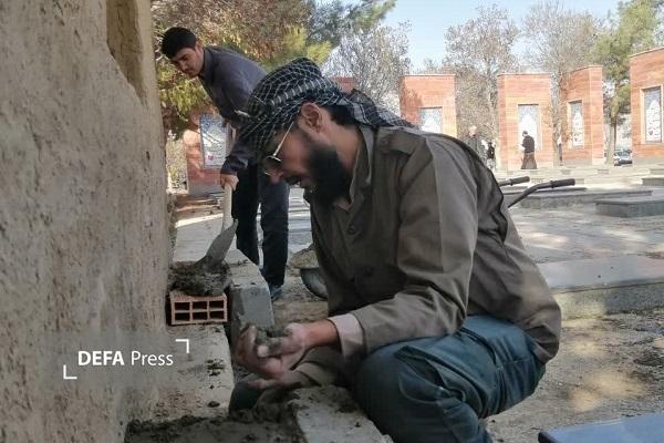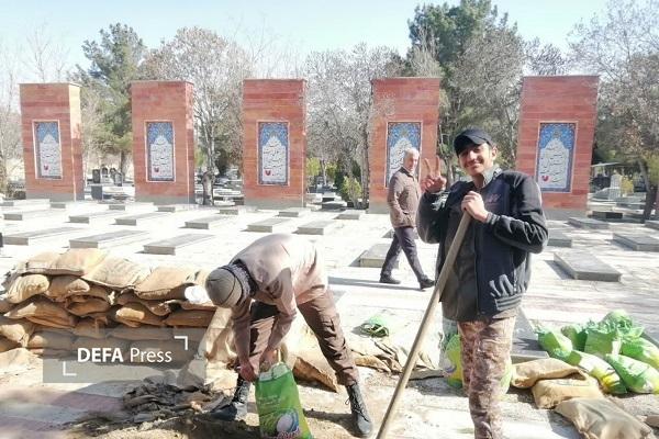 تصاویر/ تلاش گروه‌های جهادی برای زیباسازی مزار شهدا در میاندوآب