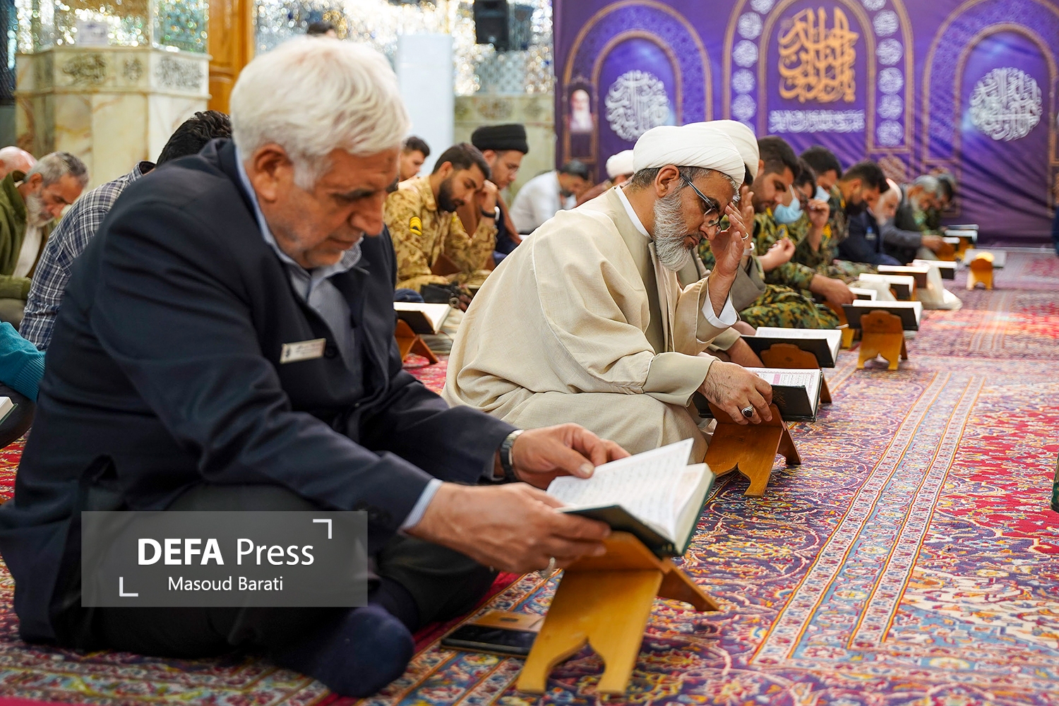 مراسم جزءخوانی و ترتیلخوانی قرآن کریم همزمان با ایام ماه مبارک رمضان در رواق دارالعباده حرم مطهر حضرت شاهچراغ (ع) با حضور مجاوران و روزهداران برگزار میشود.