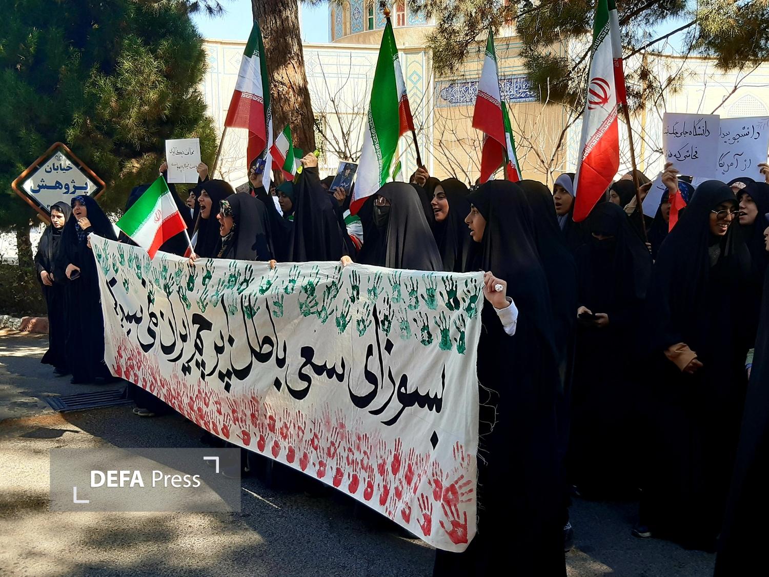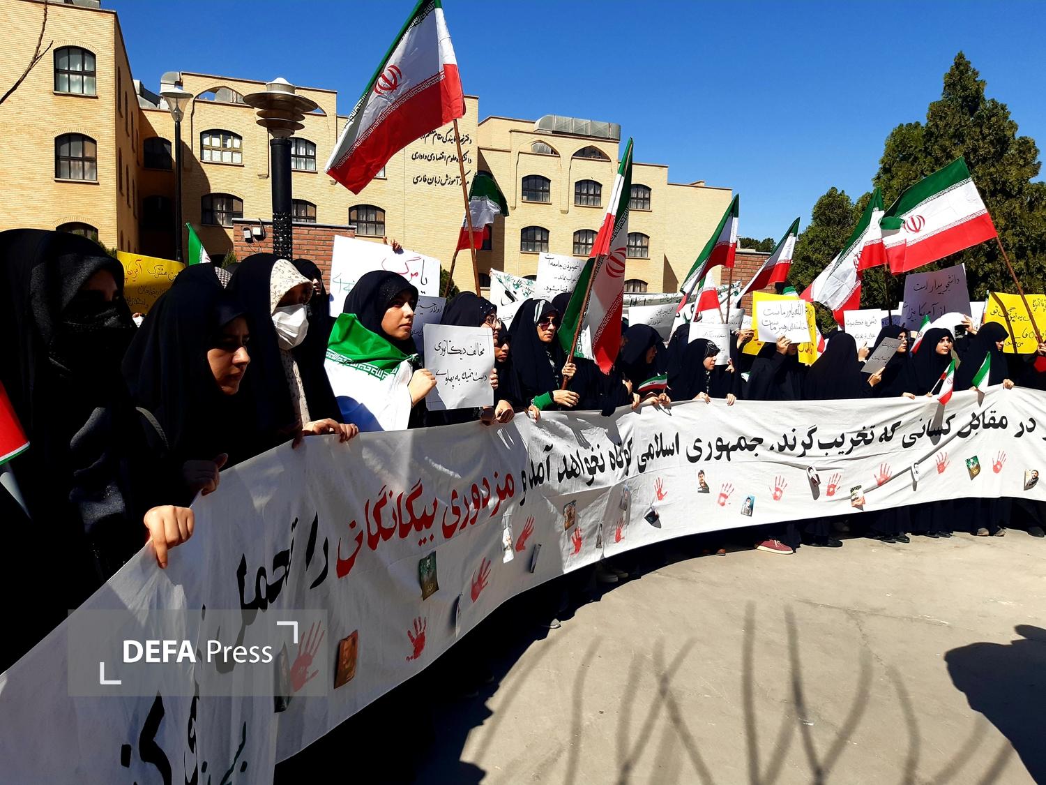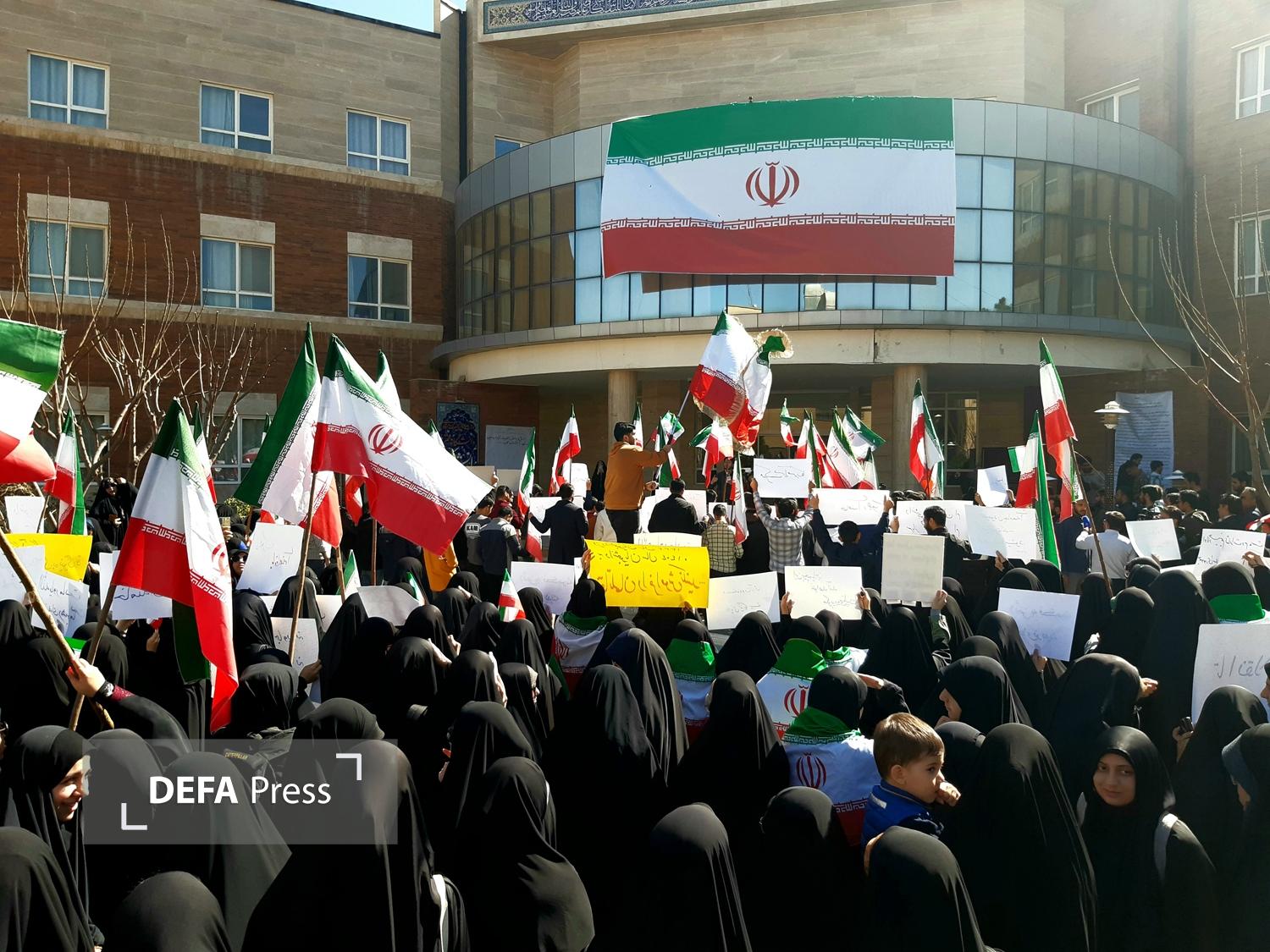 دانشجویان دانشگاه قم در محکومیت اقدامات و شعارهای ساختارشکنانه و اهانت به پرچم مقدس جمهوری اسلامی ایران برگزار شد.