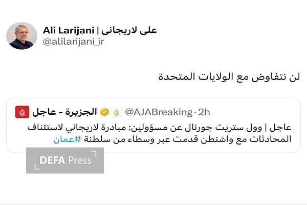 به گزارش گروه سیاسی دفاع‌پرس، «علی لاریجانی» دبیر شورای عالی امنیت ملی در پیامی تاکید کرد: ما هیچ گونه مذاکره‌ای با آمریکا نخواهیم داشت.