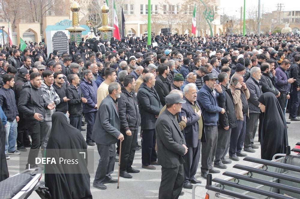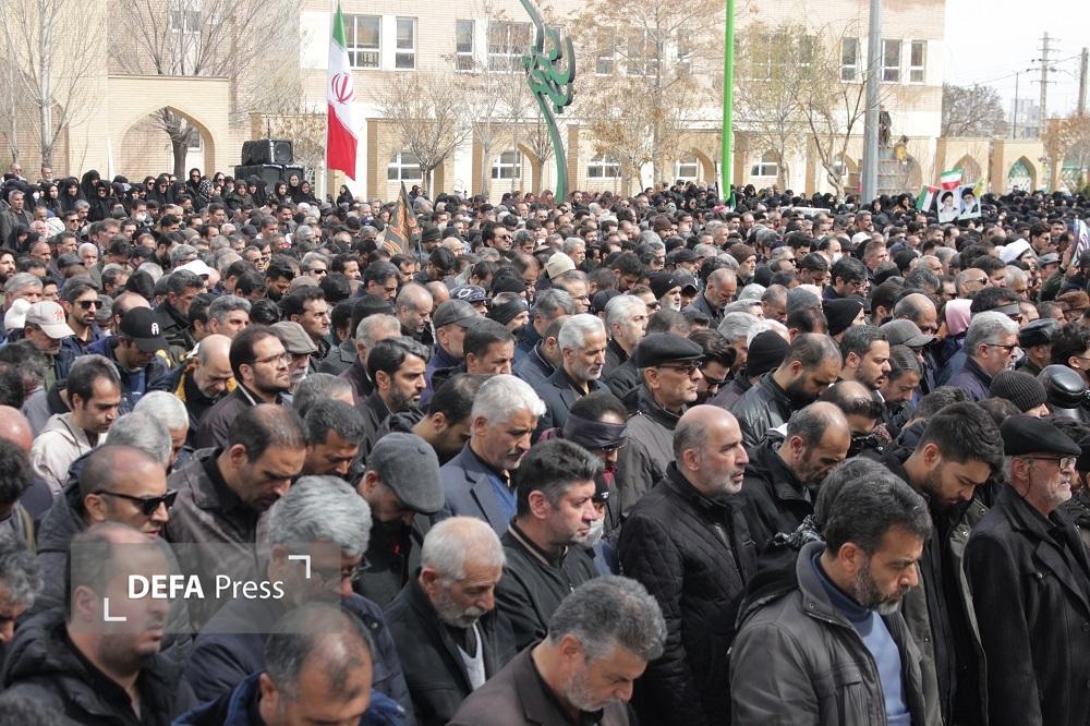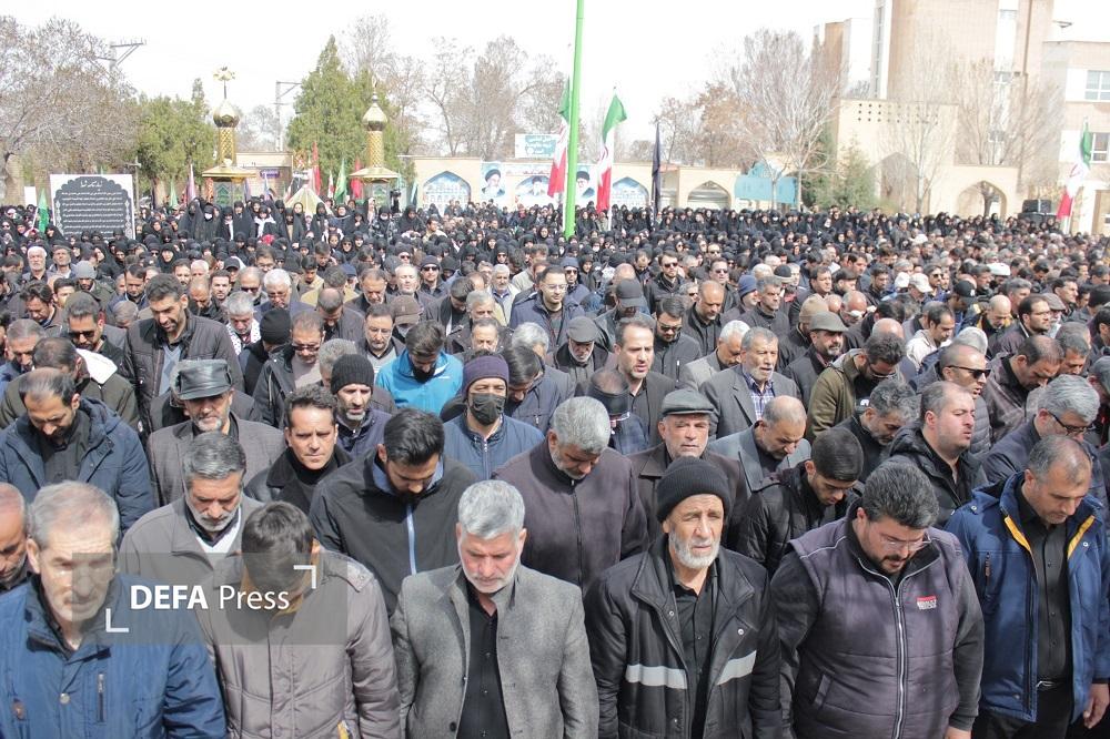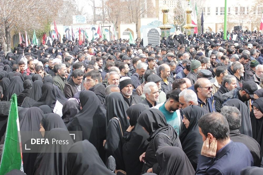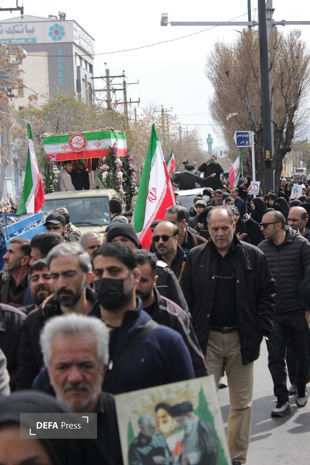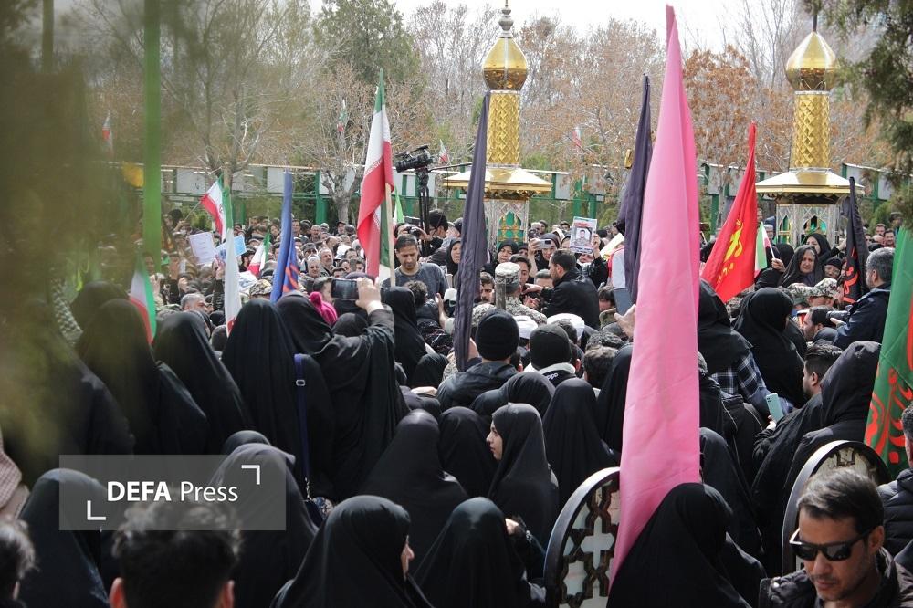 پیکر مطهر سرباز شهید عباس مبینی که بر اثر حمله دشمن آمریکایی، صهیونی به فیض عظیم شهادت نائل آمده بر روی دستان مردم شهید پرور اراک تا بهشت بدرقه شد.