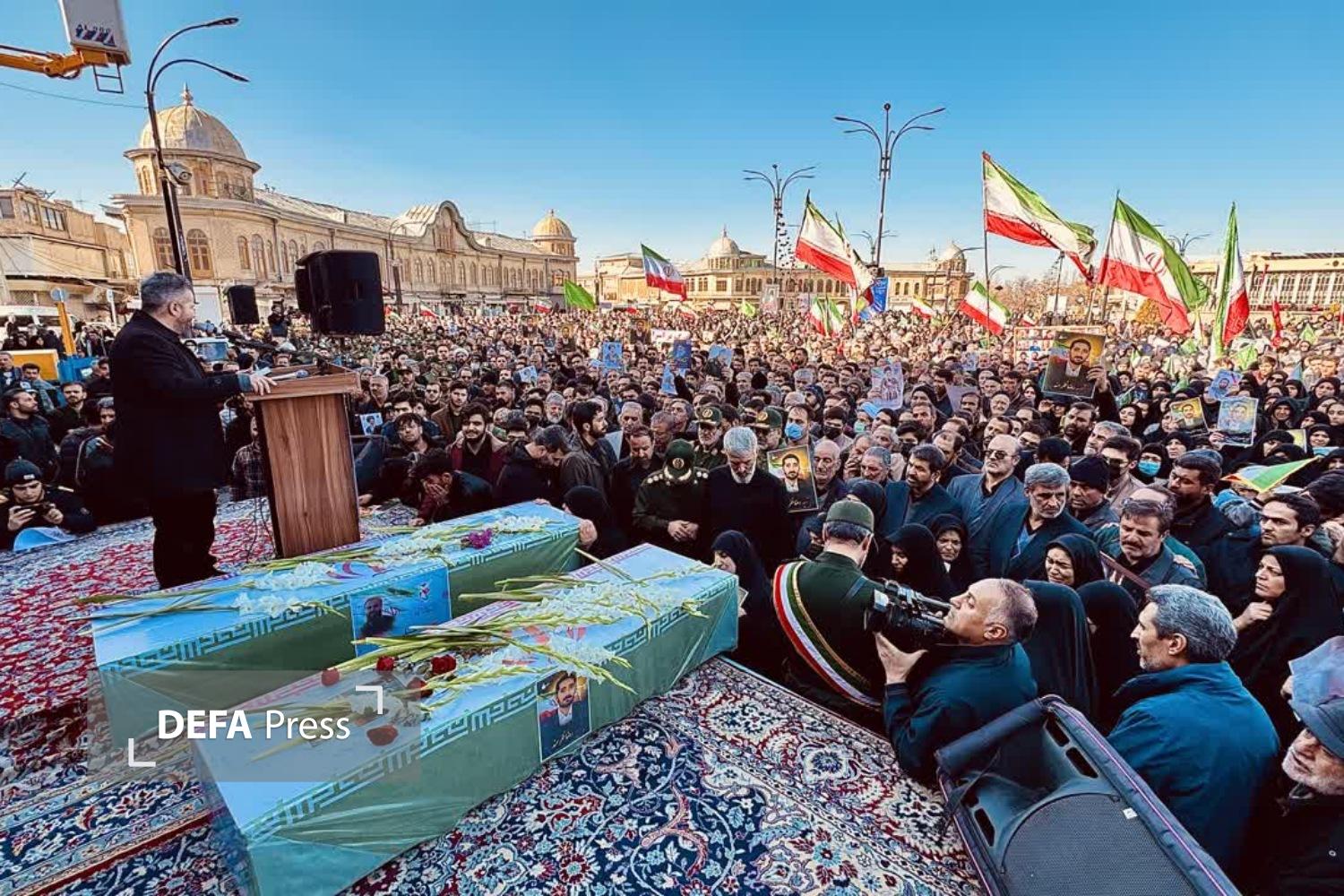 مراسم تشییع پیکر مطهر شهیدان «رضا ظفرمند» و «علیرضا زنگنه» که در پی حمله رژیم کودک‌کش آمریکا و صهیونیستی به شهادت رسیده بودند در میدان امام خمینی (ره) برگزار و سپس در گلزار مطهر شهدای همدان به خاک سپرده شدند.