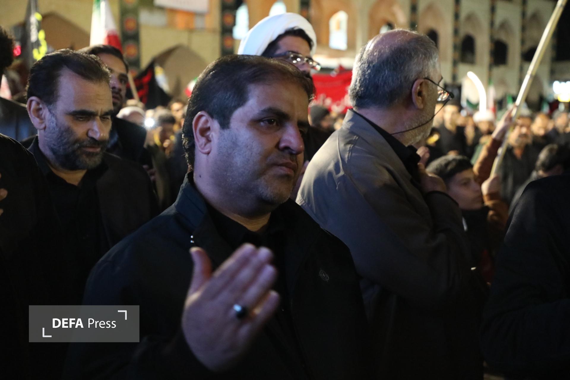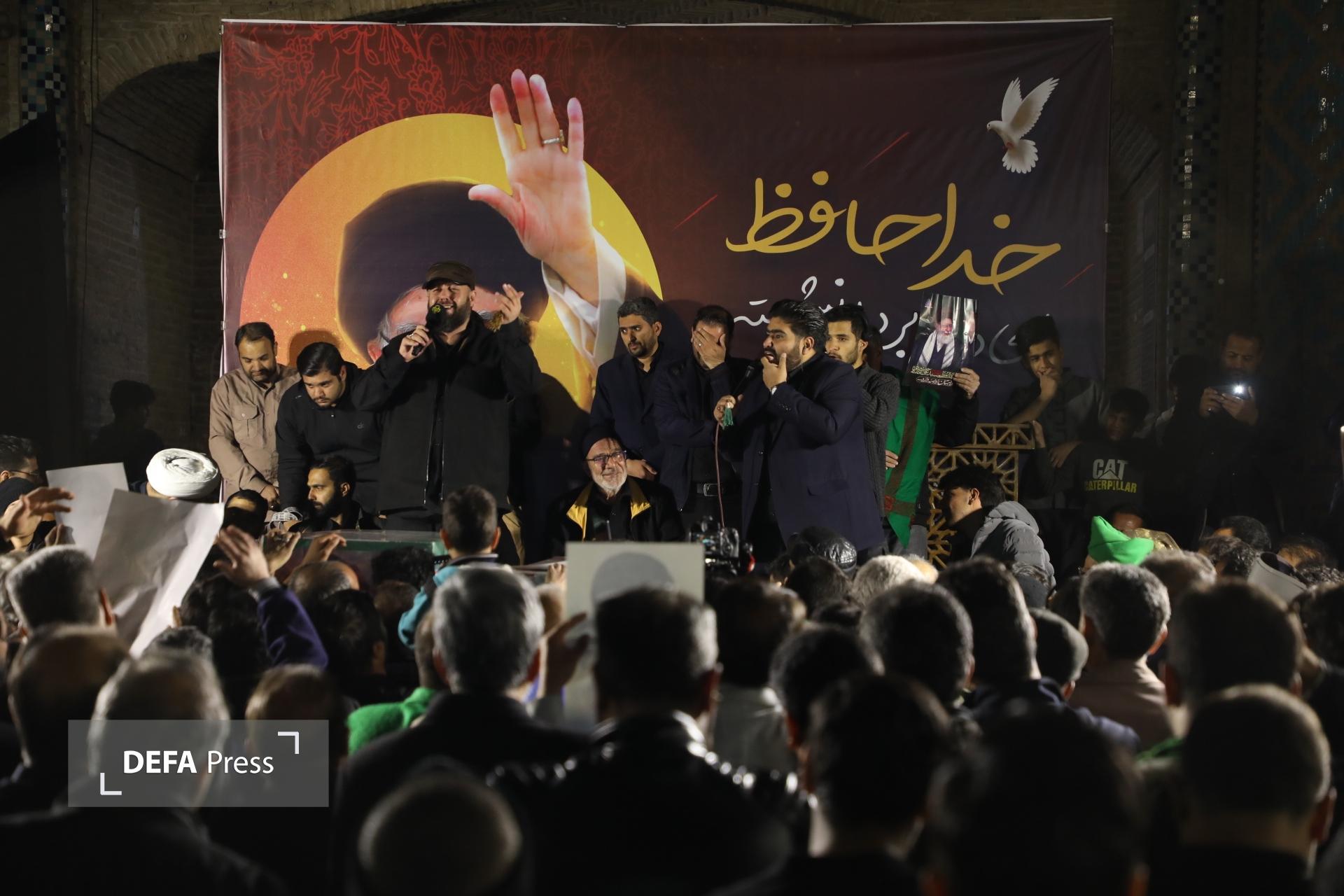 اجتماع بزرگ عاشورائیان یزد با حضور ۱۲۰ هیآت عزاداری حسینیه ایران شب گذشته در امیرجقماق در سوگ و خونخواهی سیدالشهدای انقلاب اسلامی حضرت آیتالله العظمی امام خامنهای برگزار شد.