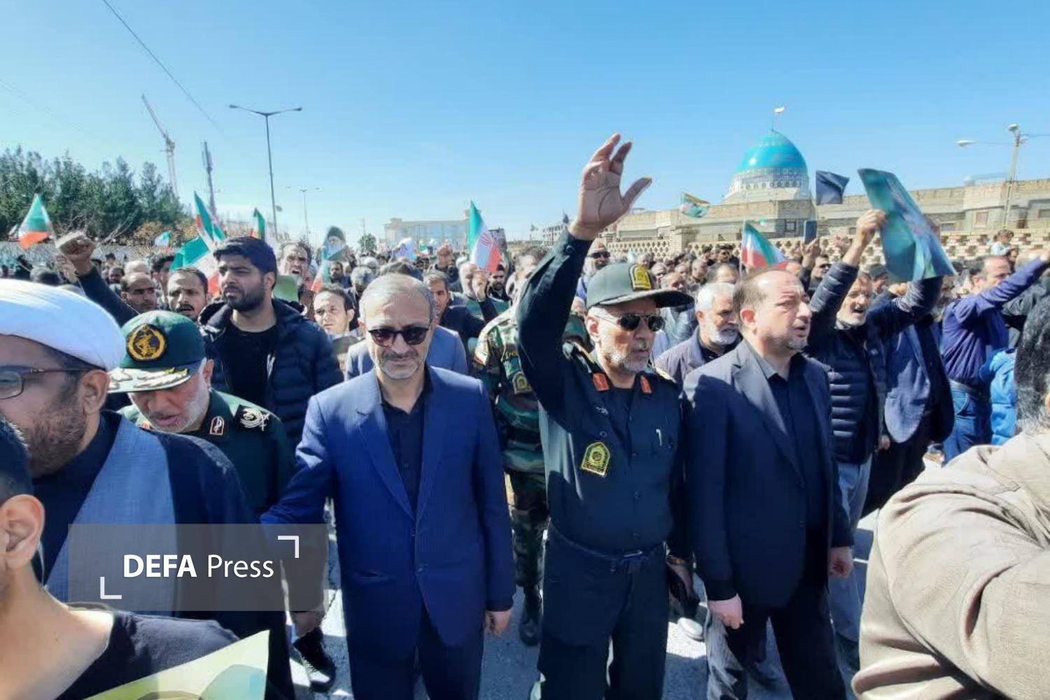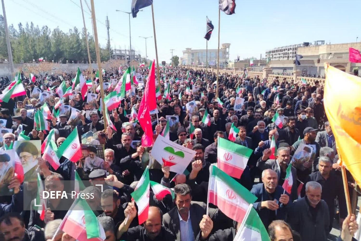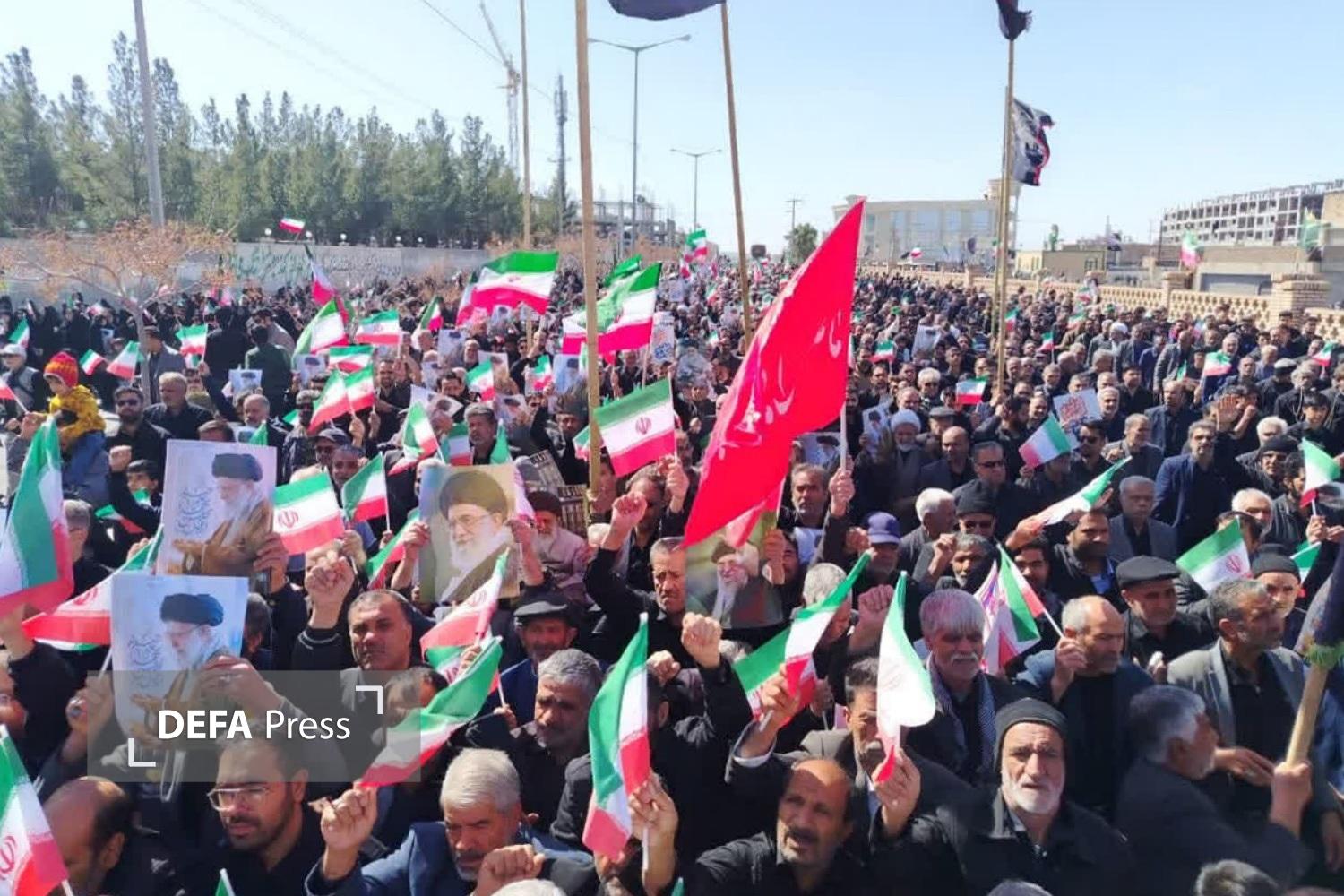 امروز جمعه نمازگزاران بیرجندی بعد از نماز جمعه در محکومیت جنایات بیسابقه آمریکا و رژیم صهیونسیتی و ابراز ارادت به رهبر شهید انقلاب اسلامی راهپیمایی کردند.