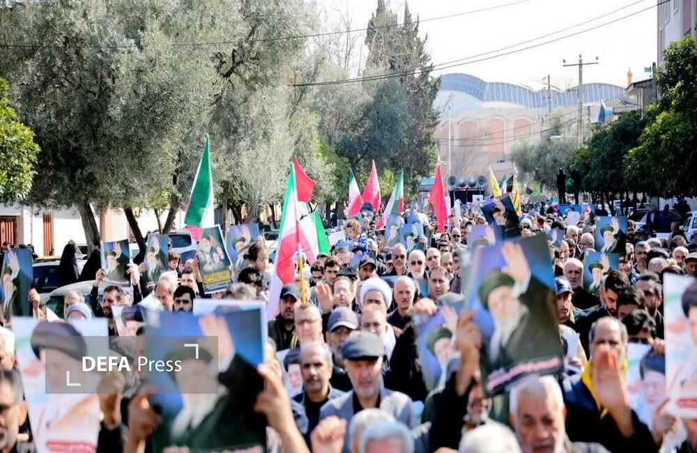 مردم گرگان پس از اقامه نماز جمعه با حضور باشکوه خود در راهپیمایی ضدآمریکایی-صهیونیستی در عزای رهبر انقلاب اسلامی سوگواری و حملات دشمنان متجاوز را به کشورمان محکوم کردند.