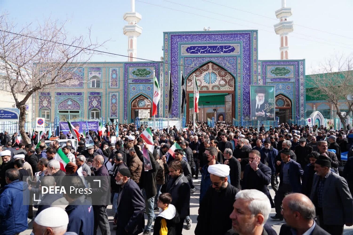 راهپیمایی محکومیت جنایات رژیم صهیونیستی و آمریکا با حضور حجت الاسلام و المسلمین رضا نوری نماینده ولیفقیه در خراسانشمالی و نمازگزاران در شهرستان بجنورد و نقاط مختلف استان برگزار شد.