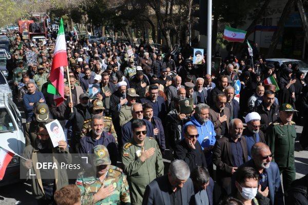 دومین مراسم تشییع پیکر مطهر شهدای جنایات اخیر آمریکایی صهیونی با حضور نیروهای مسلح واقشار مختلف مردم در اصفهان برگزار شد.