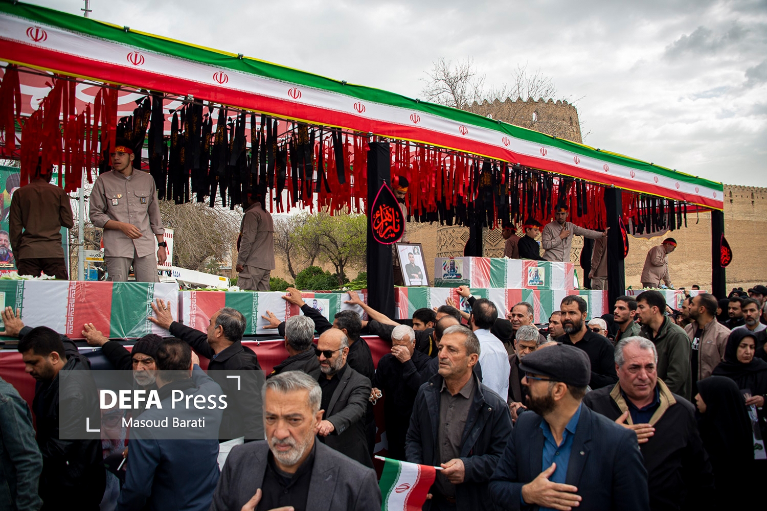 پیکرهای مطهر ۲۰ شهید والامقام جنگ رمضان که در حملات ددمنشانه رژیم آمریکا و صهیونیستی به شهادت رسیده بودند، امروز بر دستان امت حزبالله و مردم شهیدپرور این شهر تشییع و در گلزار شهدای شیراز به خاک سپرده شد.