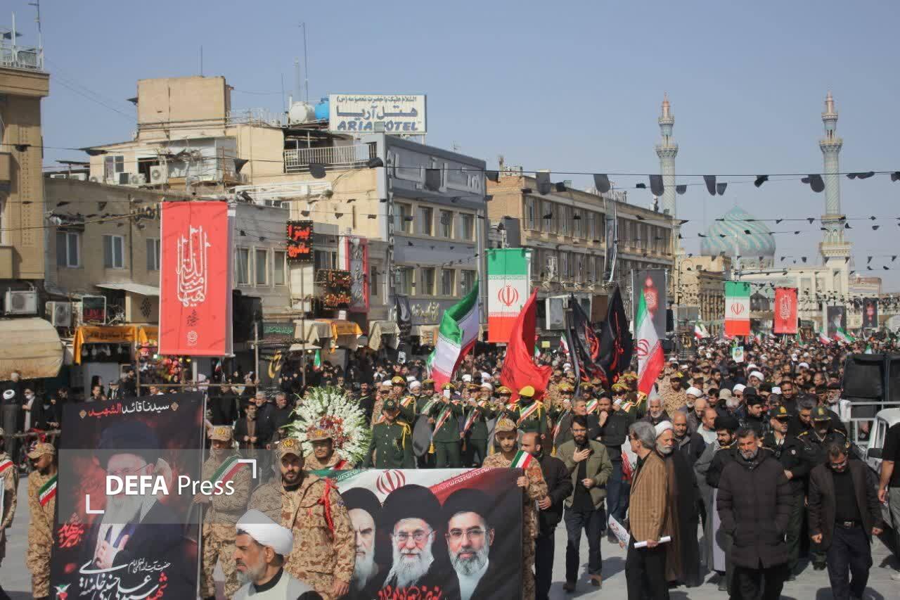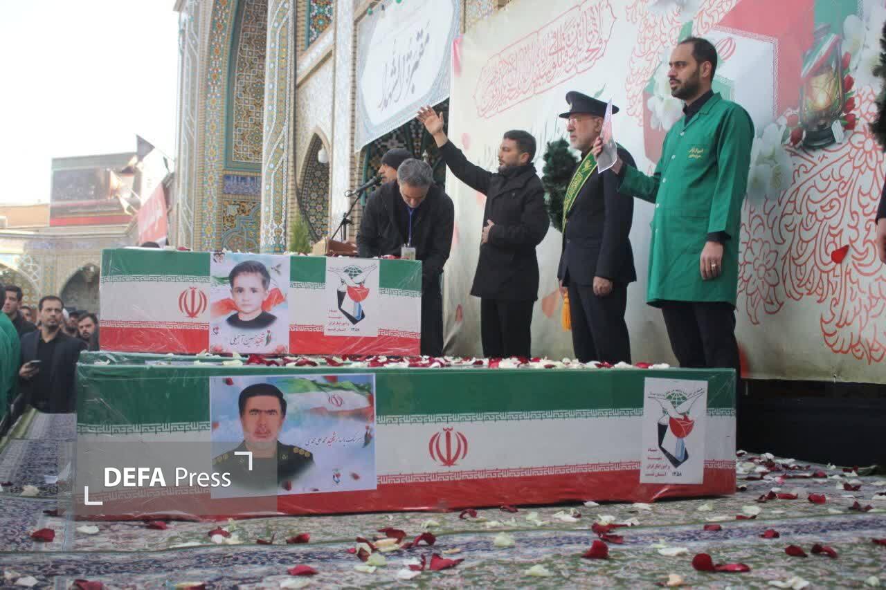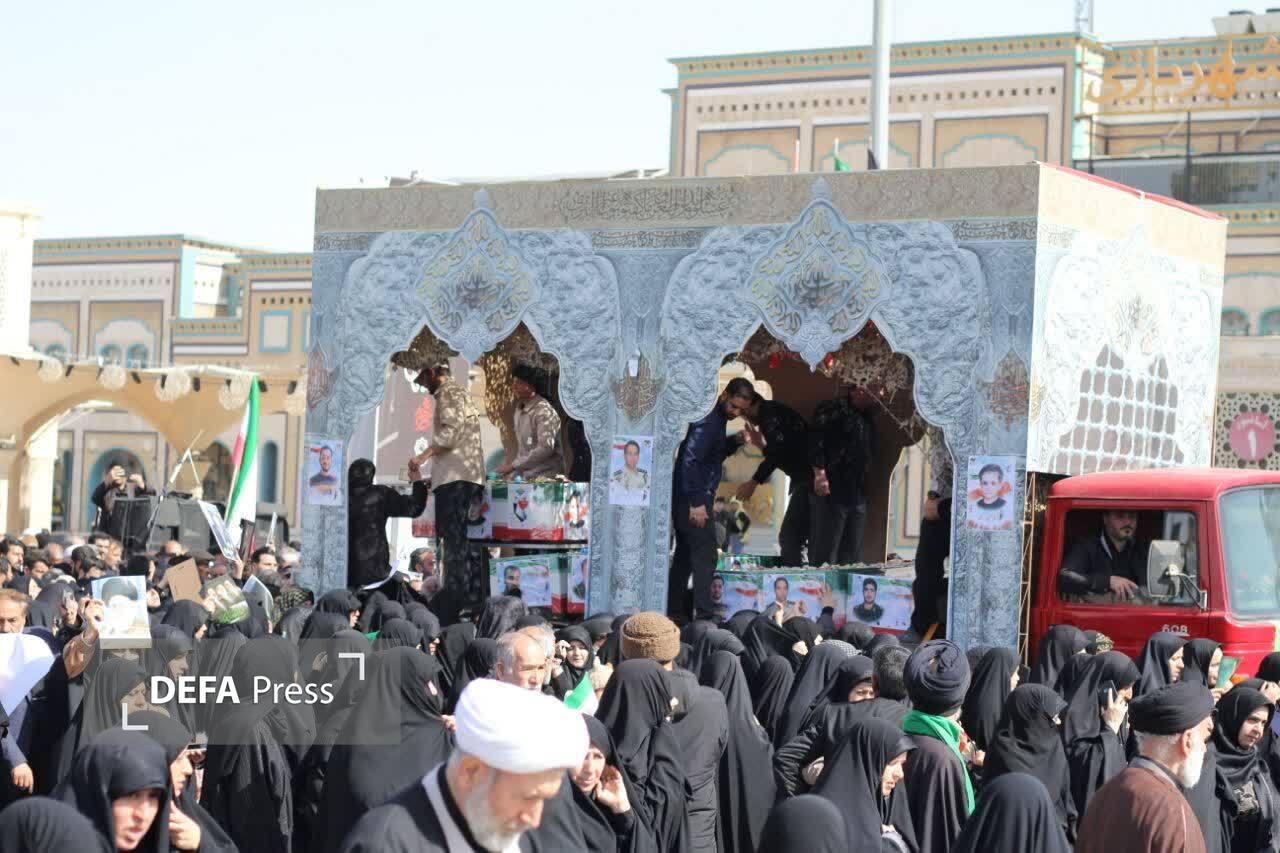 آیین تشییع ۶ شهید والامقام جنگ رمضان امروز از مسجد امام حسن عسگری (ع) تا حرم مطهر حضرت معصومه (س) و سپس تا گلزار شهدای علی بن جعفر (ع) برگزار شد.