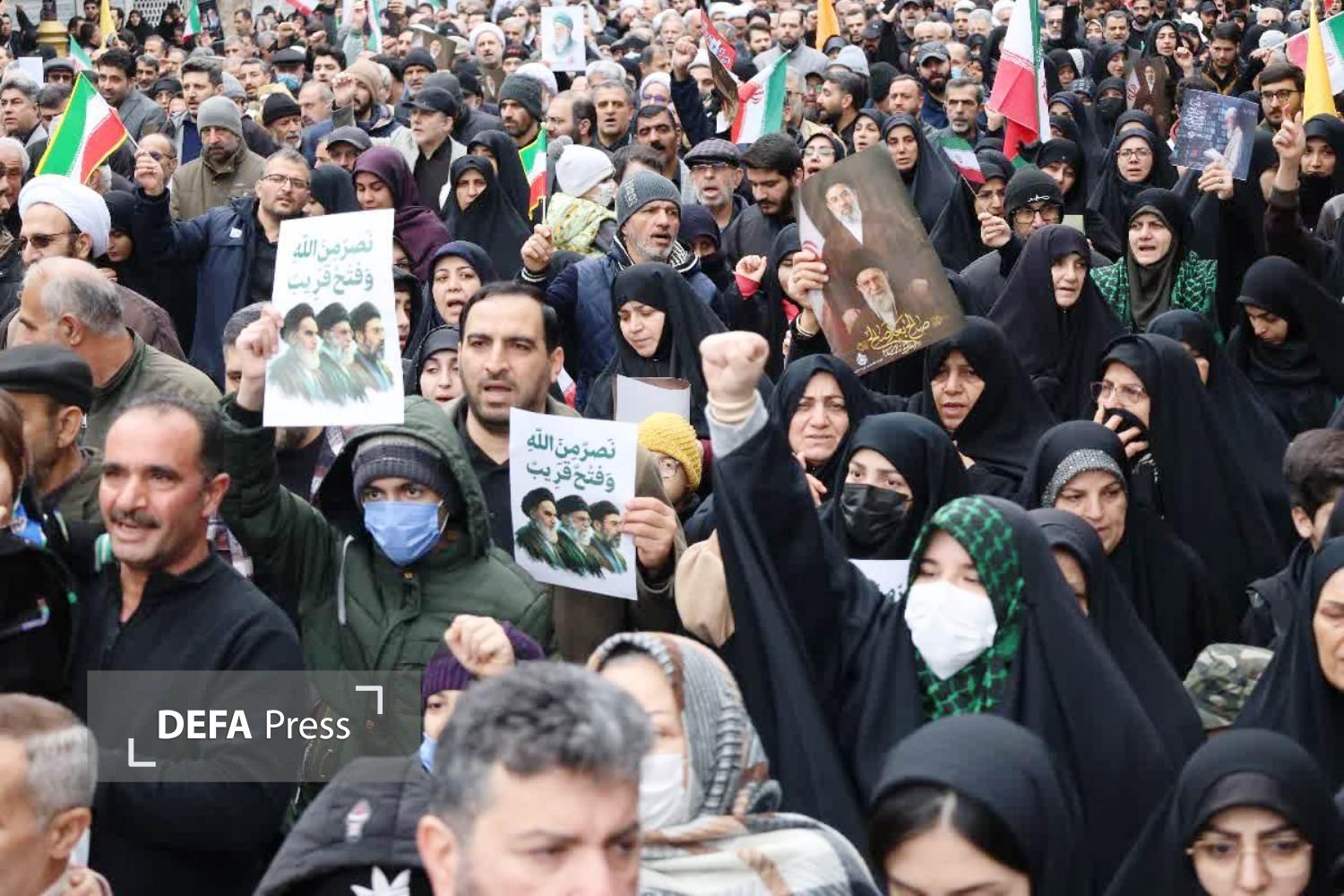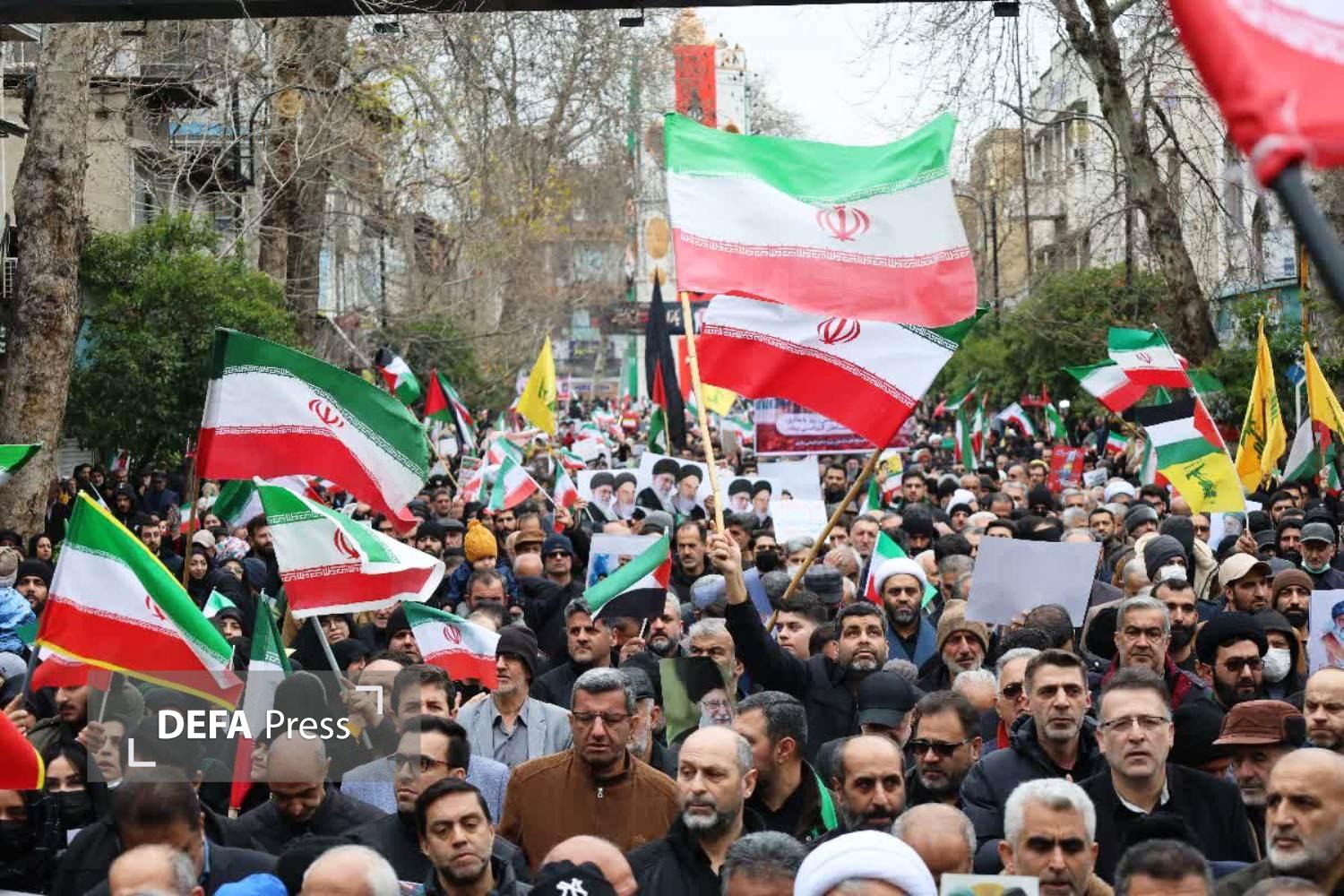 مردم روزه دار و عزادار شهادت رهبر انقلاب در آخرین جمعه ماه مبارک رمضان، با حضور دشمن شکن خود در راهپیمایی روز جهانی قدس، ضمت تشییع پیکر شهید «مهران ابراهیم نژاد» حمله متجاوزانه آمریکا و اسرائیل به ایران اسلامی محکوم کردند.