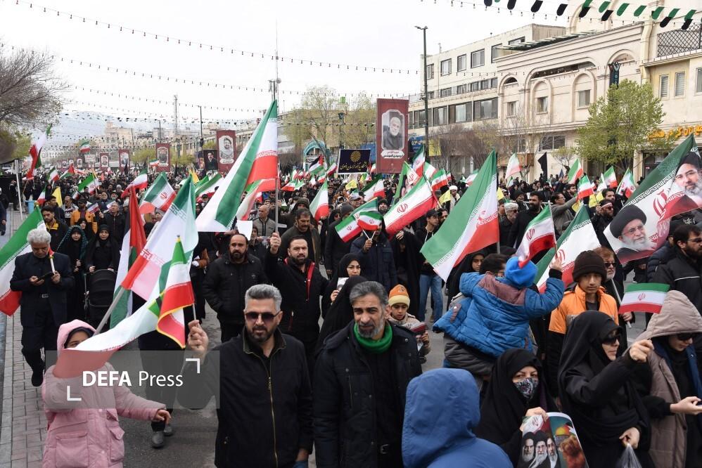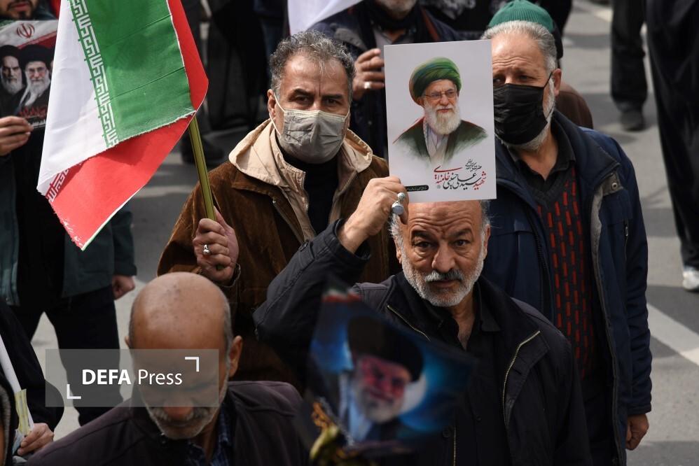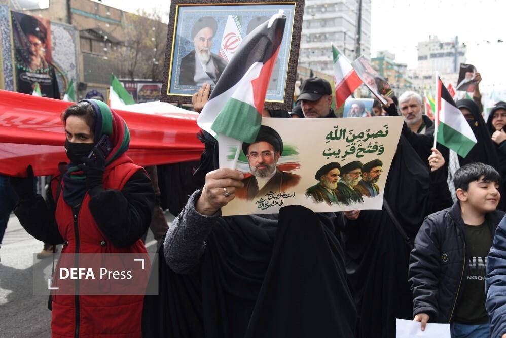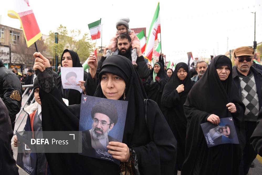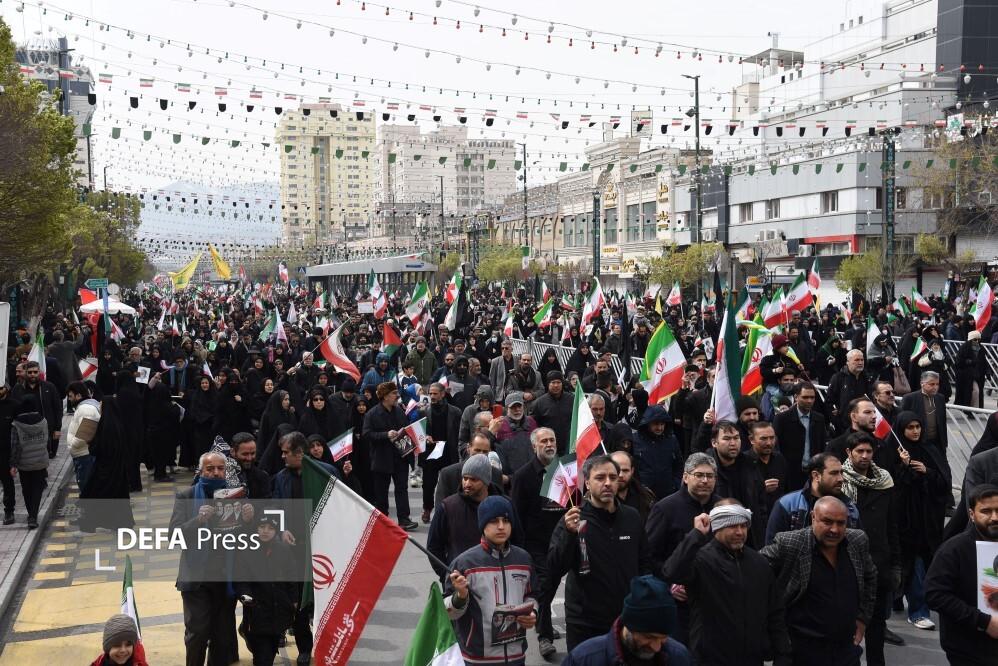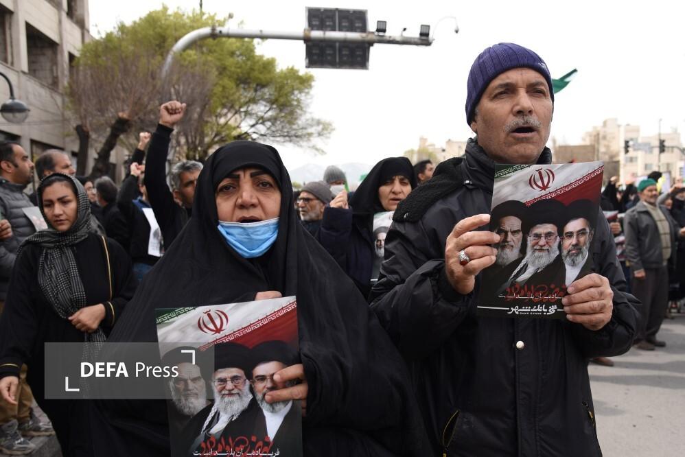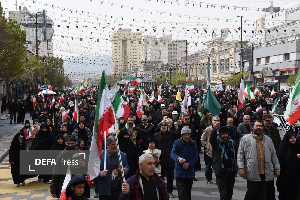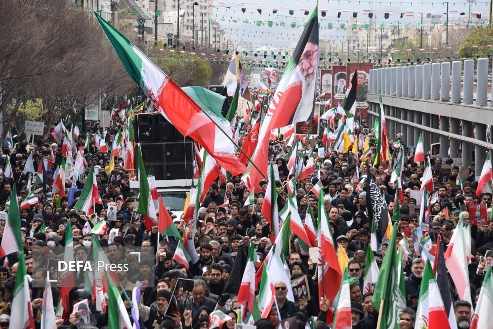 مردم مشهد و زائران حریم مطهر امام هشتم همزمان با سراسر کشور با حضور گسترده در راهپیمایی روز جهانی قدس، ضمن بیعت با سومین رهبر انقلاب و اعلام حمایت خود از ملت مظلوم فلسطین؛ فریاد انتقامخواهی رهبر شهید امت؛ حضرت آیتالله العظمی خامنهای از رژیم صهیونی و ایالات متحده آمریکا را فریاد زدند.