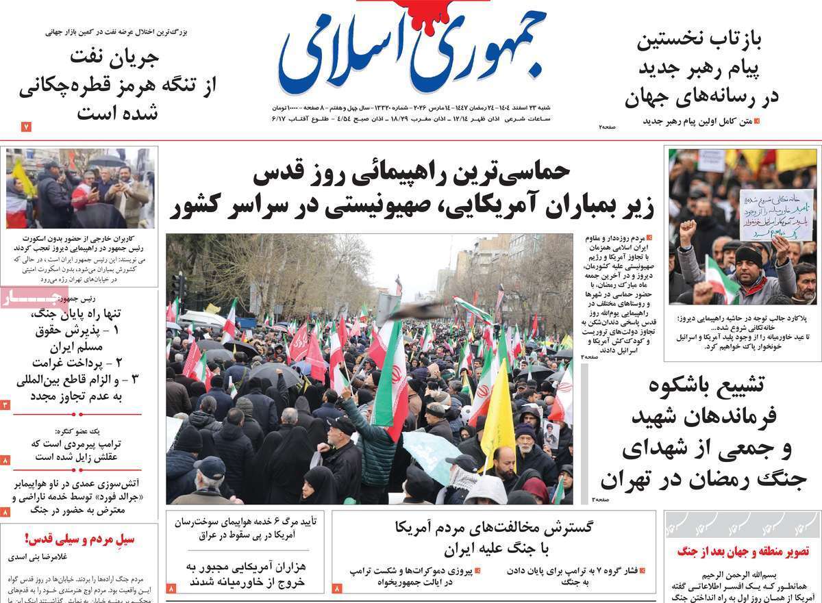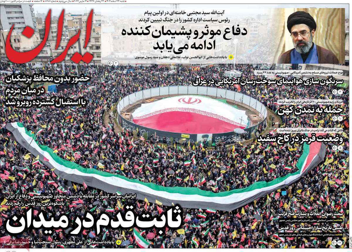 ۲۳ اسفند ۱۴۰۴ - ۱۱:۱۲ - 14March 2026